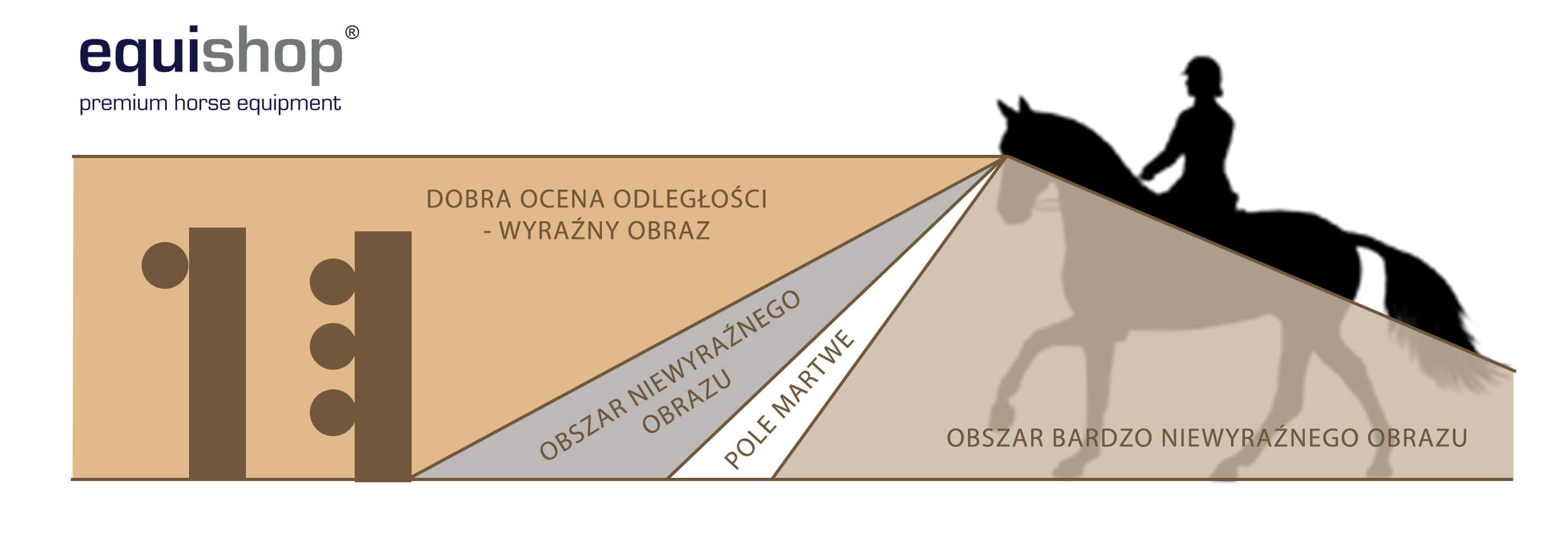 Wenn man die Pferde während der Sprünge beobachtet, kann man sehen, dass wenn sie sich einem Hindernis nähern, sie den Kopf heben. Sie tun dies, um ein besseres Bild von beiden Augen zu bekommen und herauszufinden, welche Höhe und Breite genau das Hindernis hat (mit beiden Augen). Wenn das Tier bereits in der Sprungphase ist, kann es das Hindernis nicht mehr sehen und kann sich nur noch auf das verlassen, woran es sich erinnert und was es vorher aus der Entfernung gesehen hat - in Wirklichkeit springt es aus dem Gedächtnis heraus. Pferde, um sich selbst zu helfen, versuchen im letzten Moment den Kopf zu heben, um zu sehen, was sie springen. Aus diesem Grund lohnt es sich den Absprung markierende Stangen vor ein Hindernis zu setzen - sehr hilfreich, besonders bei der Arbeit mit jungen Pferden, weil es ihnen so leichter fällt, den Moment und Ort des Absprungs zu finden.
