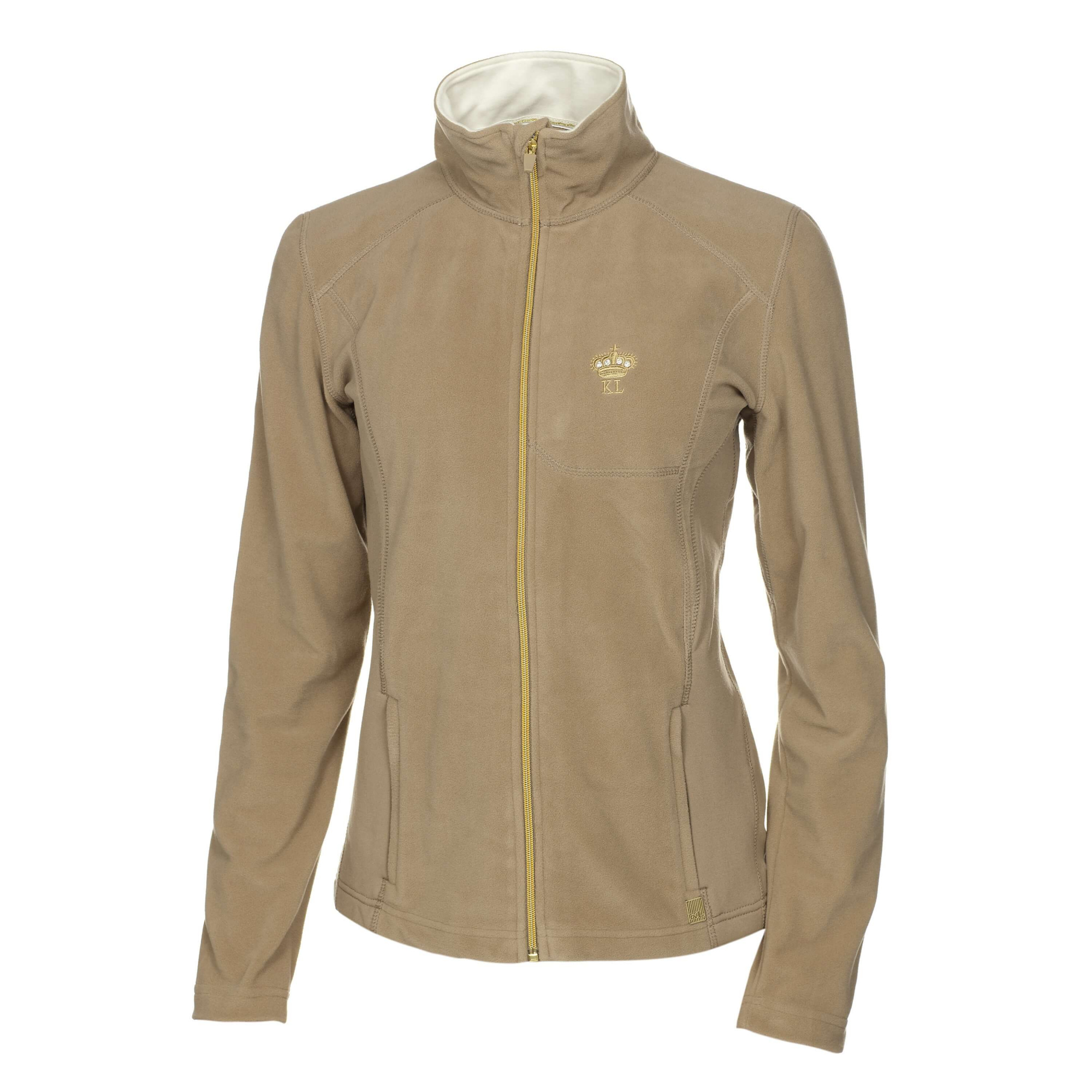 Frauenvlies-Sweatshirt mit guter Anpassung aus strapazierfähigem Material. Leicht elastisch. Gibt viel Bewegungsfreiheit. Mit Reißverschluss (in Kontrastfarbe). Es hat zwei Taschen mit Reißverschluss und ein dekoratives Emblem auf der Brust in Form einer Krone mit Zirkonen. Materialzusammensetzung: 100% Polyester.
