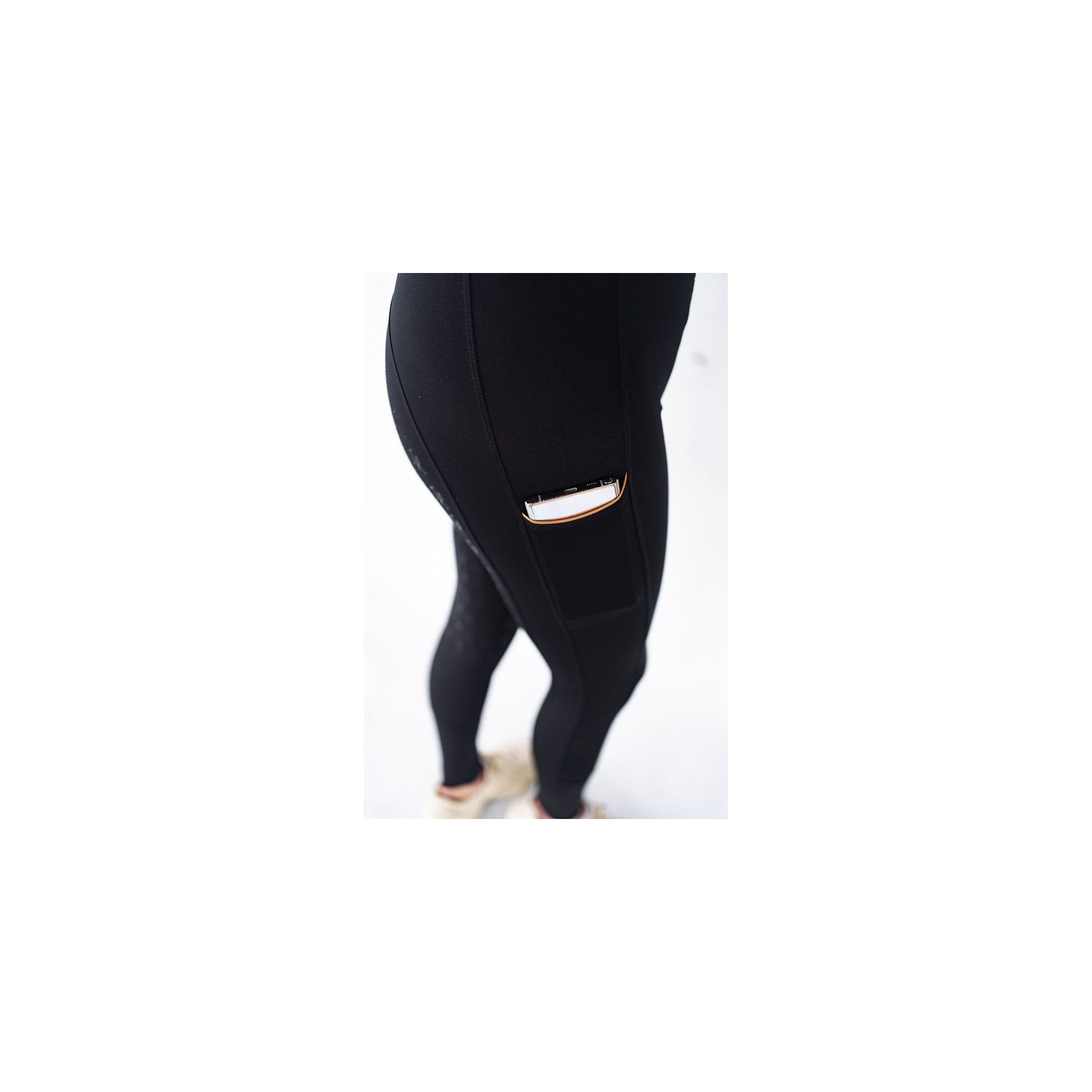 Der Silikonvollbesatz der Air Mesh Leggings sorgt für eine stabile Position des Reiters im Sattel und erhöht die Sicherheit beim Reiten. Darüber hinaus verfügt die Leggings über eine hohe Taille und praktische Taschen an der Seite. Die Hosenbeine sind elastisch, wodurch sie perfekt unter Reitstiefel passen.