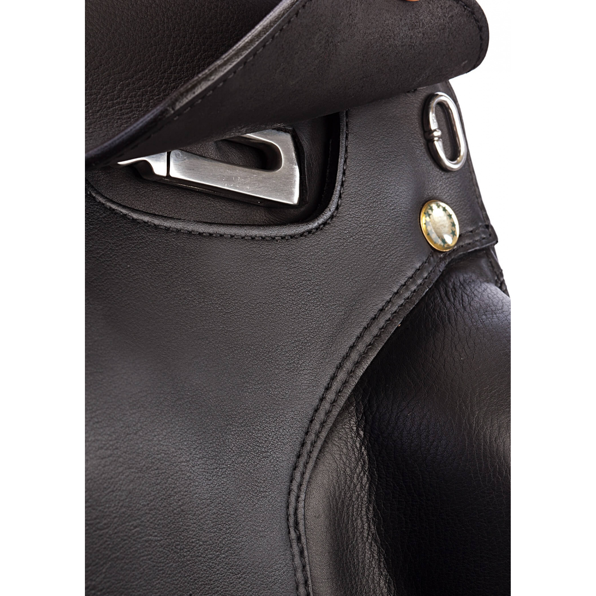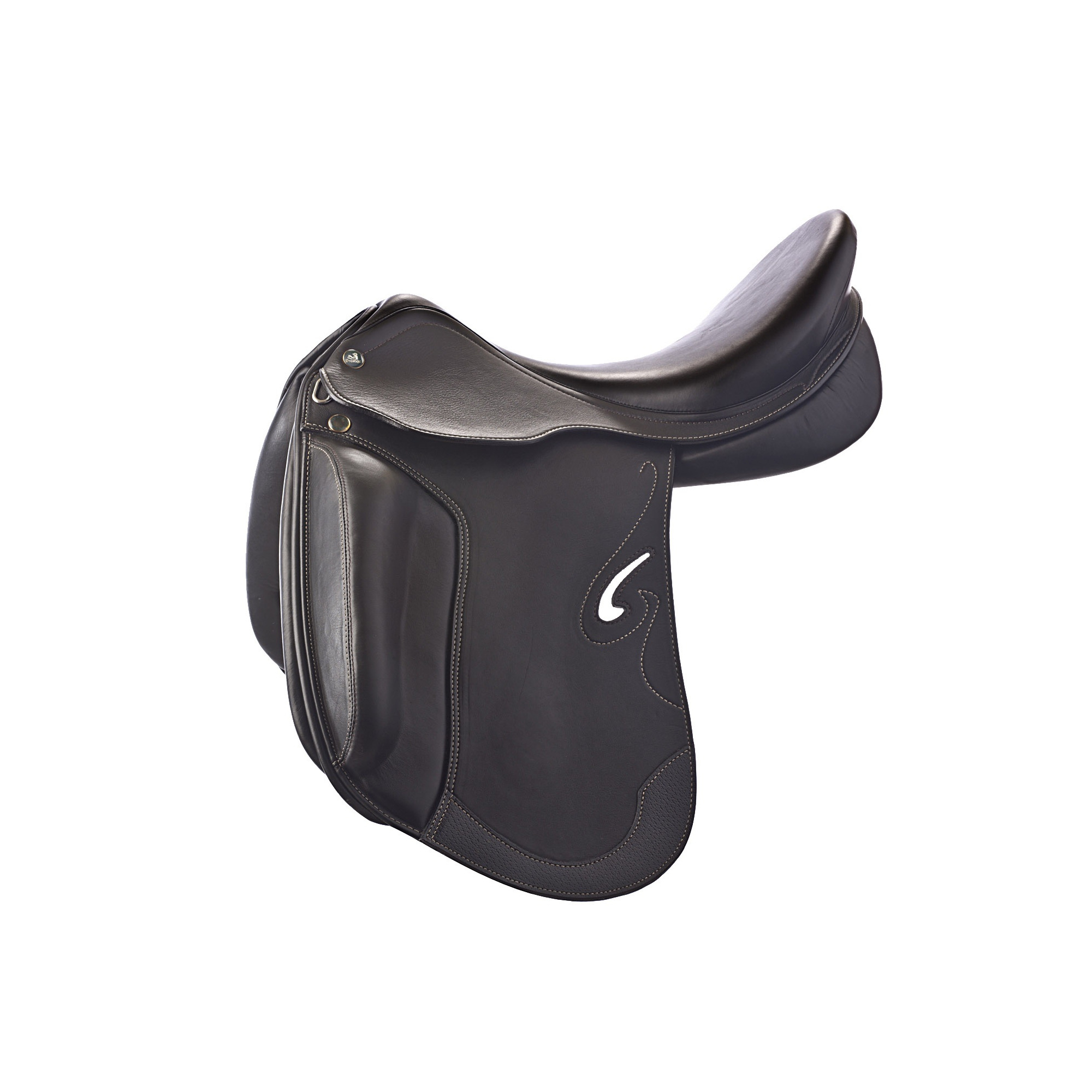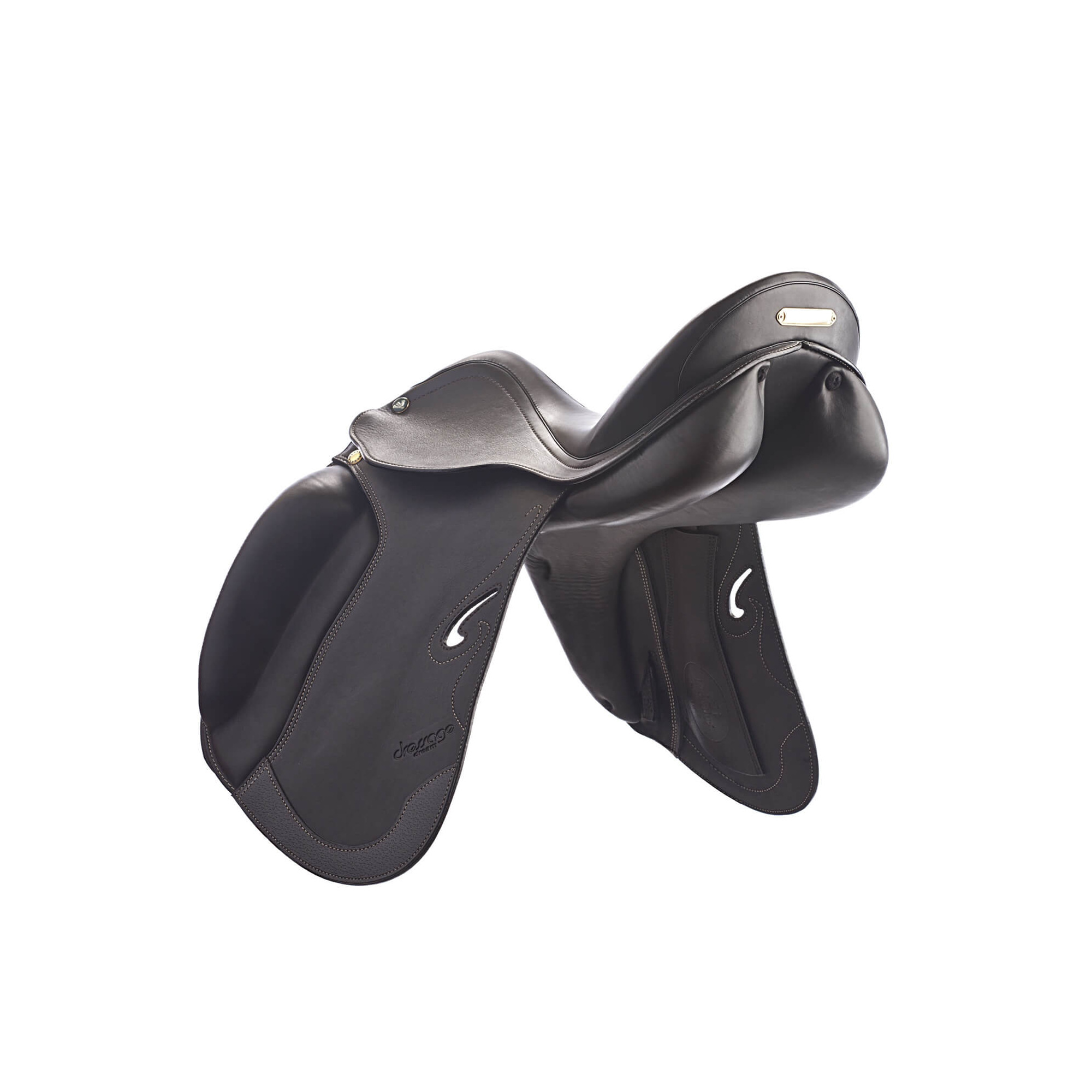 DRESSAGE DREAM ist ein einblättriger, sehr bequemer Sattel. Er hat einen tiefen Sitz und eine neue Form der Vorderpausche. Der Sattel ist komplett aus hochwertigem, italienischem Kalbsleder mit erhöhten Haltbarkeitsparametern angefertigt. Er ist mit "close contact" Kissen ausgestattet, die mit Latex gefüllt sind. Der Sattel ist perfekt für alle Rückenarten, er liegt auch stabil auf runden Pferden, mit wenig Widerrist, die dazu neigen, die Sättel auf die Schulter zu verschieben. Die neue Befestigung der schmalen Lederstreifen garantiert ein Minimum an Drucks in der Nähe der Schulterblätter und aller Stützmuskeln, was ihre Entwicklung begünstigt.