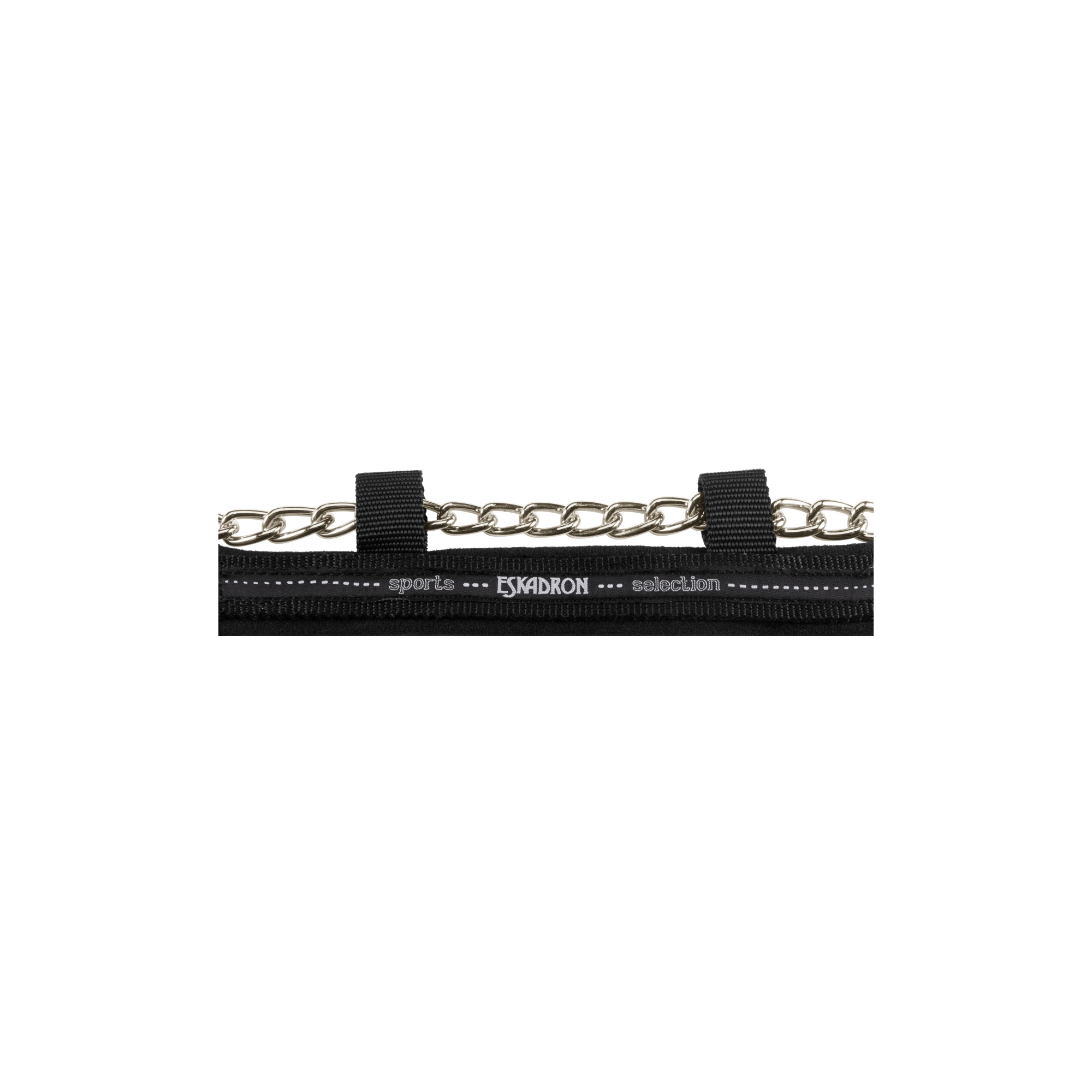 Control Halfter besteht aus hochwertigem, reißfestem Doppelgurtband. Es hat eine angebrachte Kette, die sich perfekt zum Führen schwieriger Pferde eignet. Im Nasen- und Genickriementeil ist es mit einem Material ausgekleidet, das Abschürfungen verhindern soll.