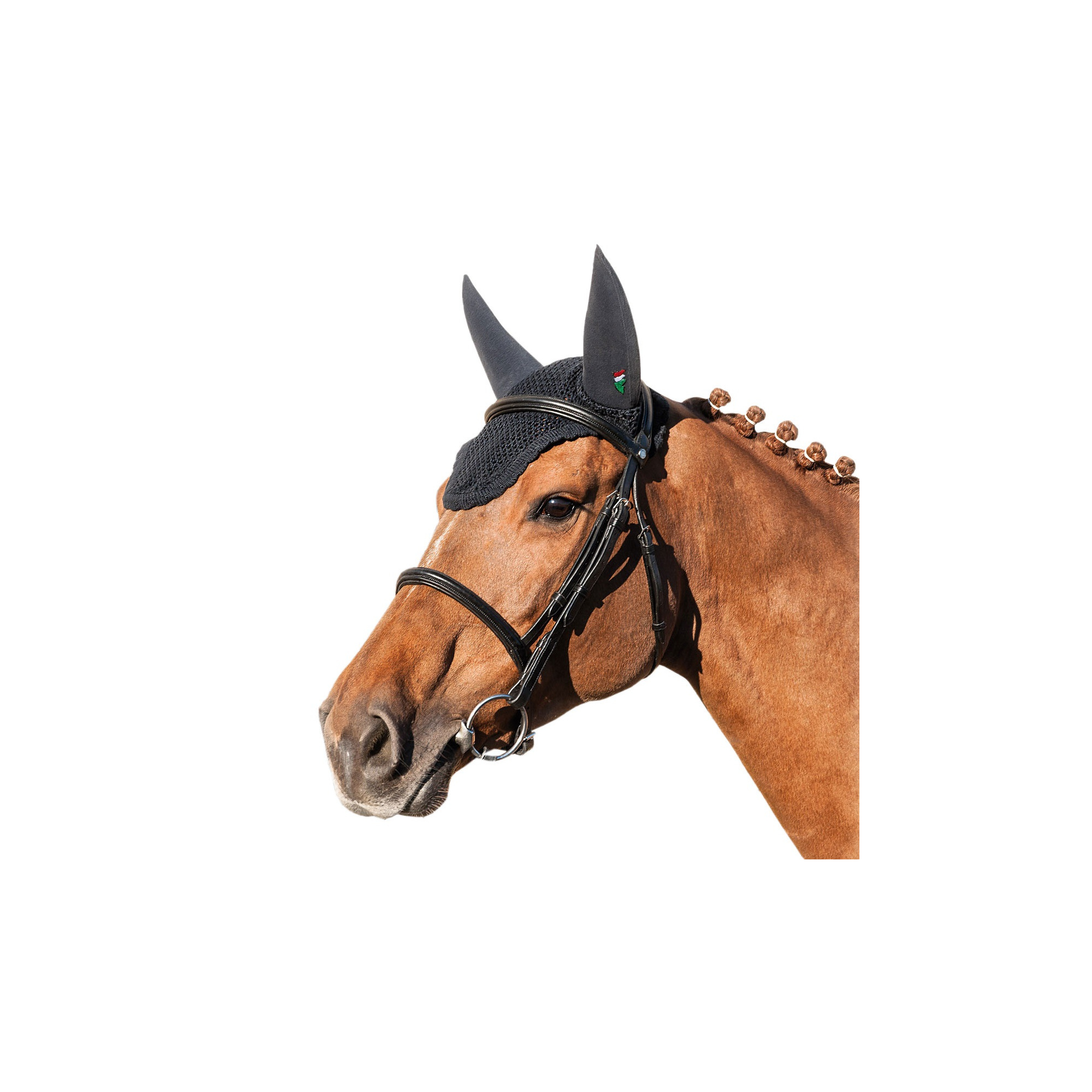 Die mehrschichtige Ausführung dieser Fliegenohren ermöglicht es, Umgebungsgeräusche zu dämpfen, damit das Tier konzentriert bleibt. Die Fliegenohren bestehen aus drei Schichten - die mittlere Schicht besteht aus dicker, antiallergischer Baumwolle mit antibakterieller Beschichtung.