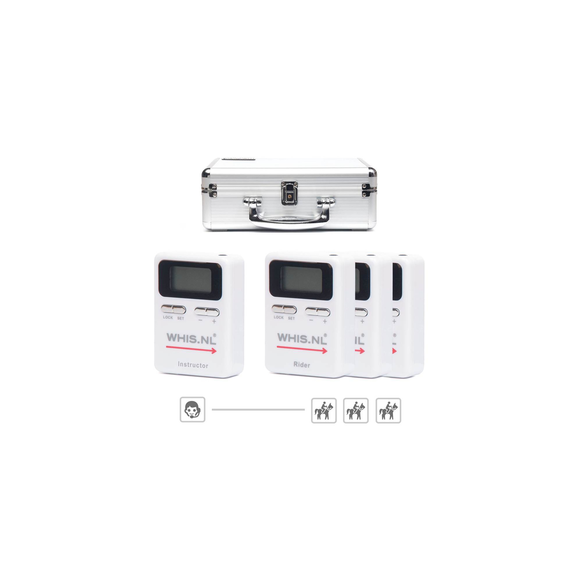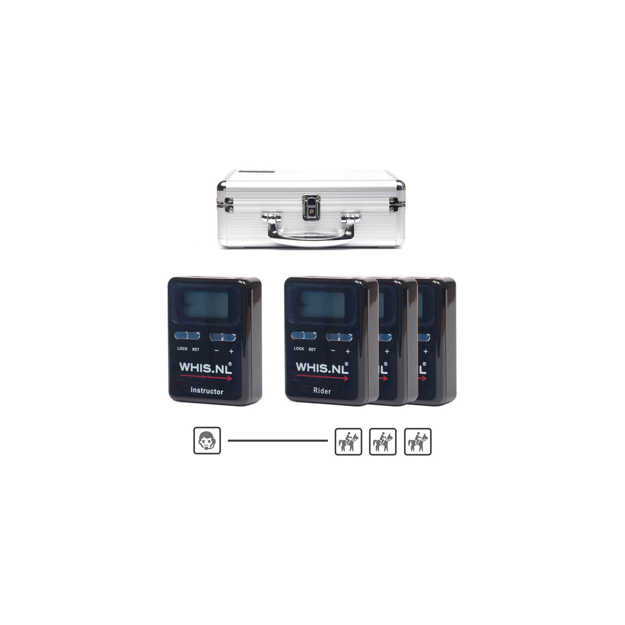 WHIS ist ein kabelloses System zur Kommunikation zwischen Trainer (Sender) und dem Trainierendem (Empfänger). Das WHIS System garantiert Klangklarheit und keine Verzögerungen im Bereich von bis zu 300 Metern.