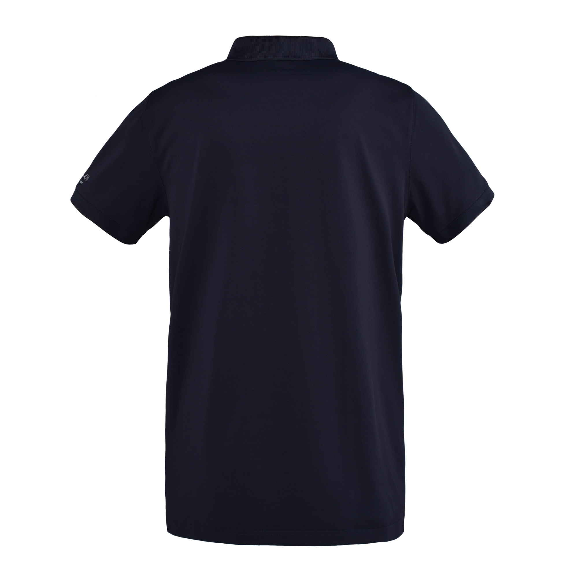 Das Herrenpoloshirt ist aus weichem Stoff hergestellt. Es hat atmende und kühlende Eigenschaften. Das Material, aus dem es besteht, trocknet schnell. Der Kragen und die Ärmelenden sind aus einem Gummiband angefertigt. Im Krageninneren befindet sich ein dekorativer dreifarbiger Streifen. Das Kingsland-Logo ist auf dem linken Ärmel und auf der Brust gestickt.