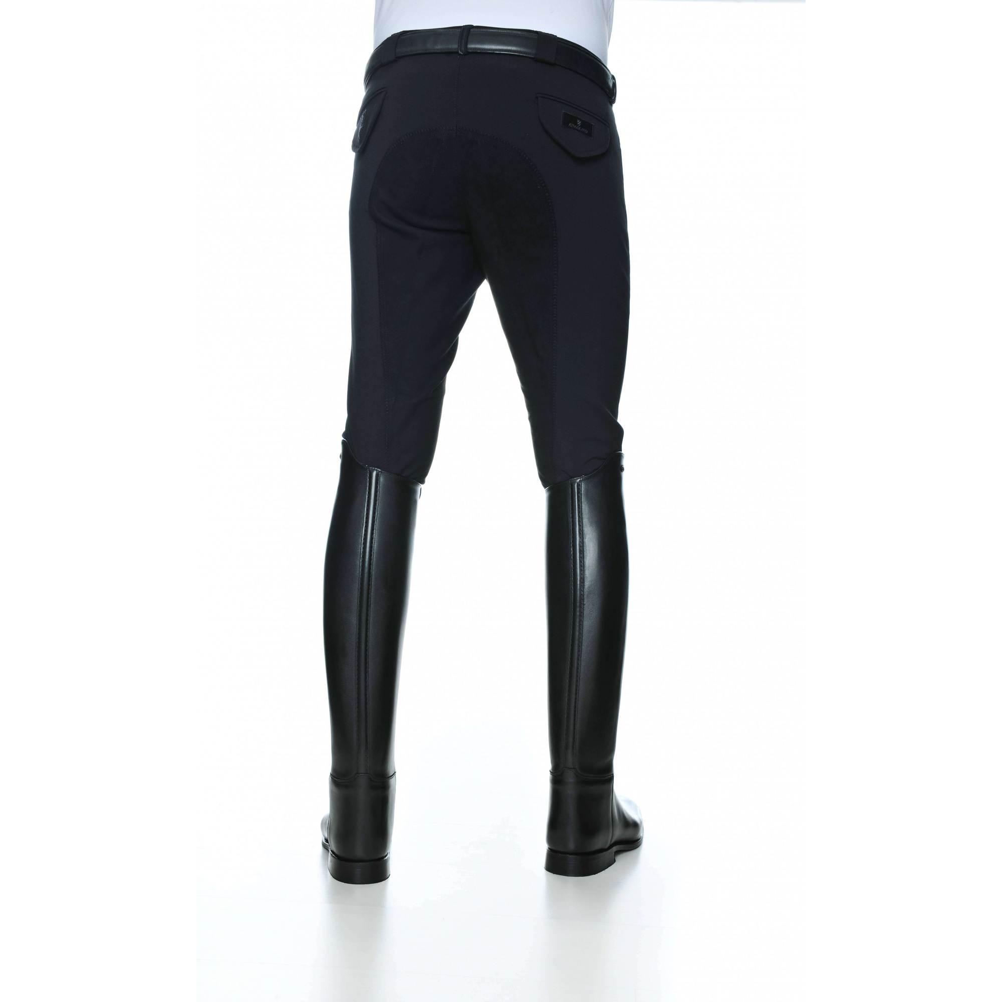 Herrenreithose aus hochwertigem, technischem Schoeller-Material. Mit zwei Gesäßtaschen mit Patten, rechte mit dem Kingsland-Schild. Das Material passt sich perfekt dem Körper an und bietet gleichzeitig viel Bewegungsfreiheit.