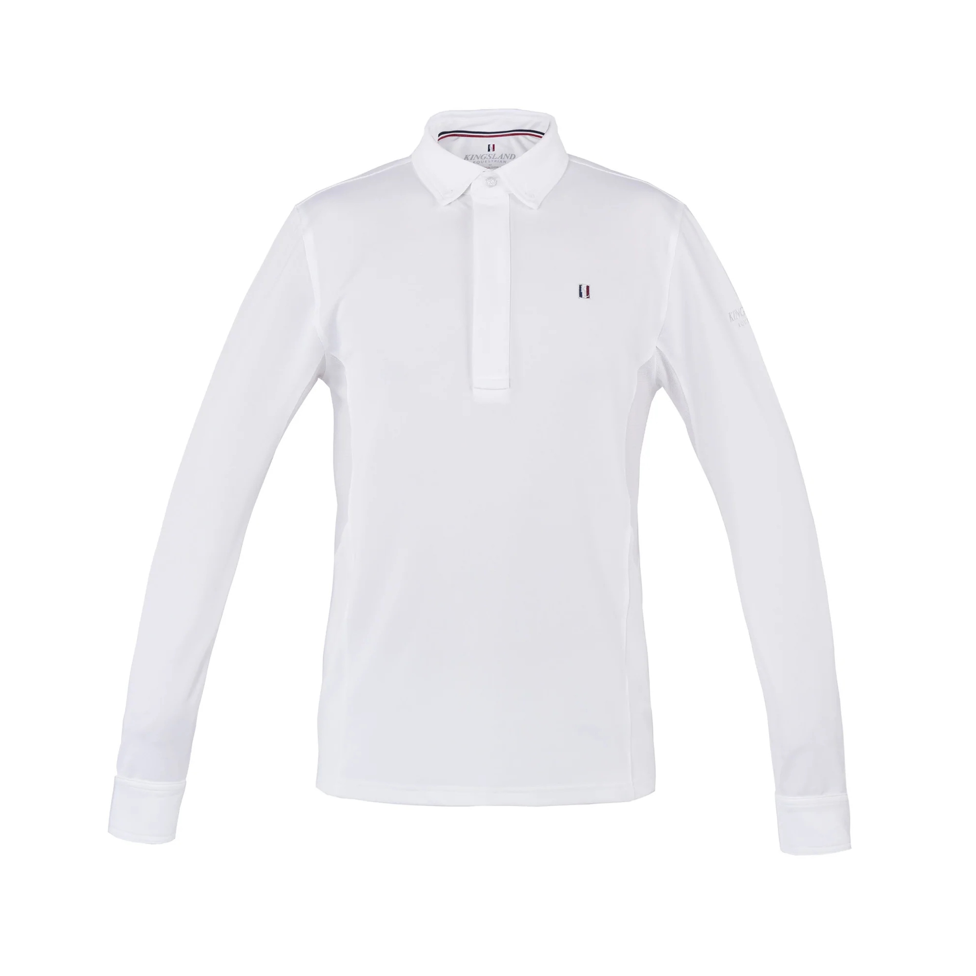 Kingsland Herrenturnierhemd. Es wurde aus atmungsaktivem, sehr elastischem Material gemacht. Es ist an den Körper angepasst. Es gibt Ihnen großen Komfort während des Reitens und große Bewegungsfreiheit. Es hat ein zusätzliches Logo an der Vorderseite auf der Brust und am Ärmel.