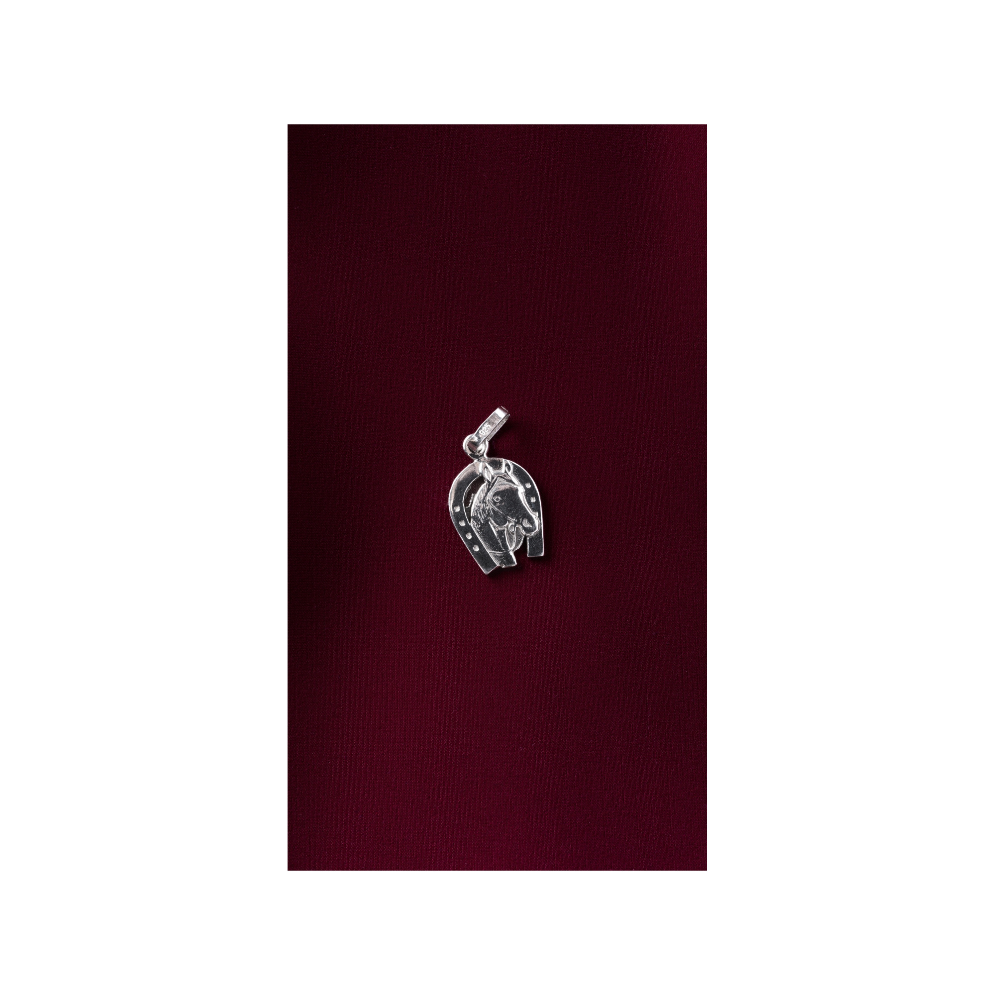 Der Anhänger ist aus Silber (925) und zeigt einen Pferdekopf in einem Hufeisen. Dank der Handarbeit präsentiert der Anhänger kleine Details der Augen und des Zaumzeugs des Pferdes. Schmuck mit Pferdemotiv ist eine tolle Geschenkidee für einen Pferdeliebhaber.