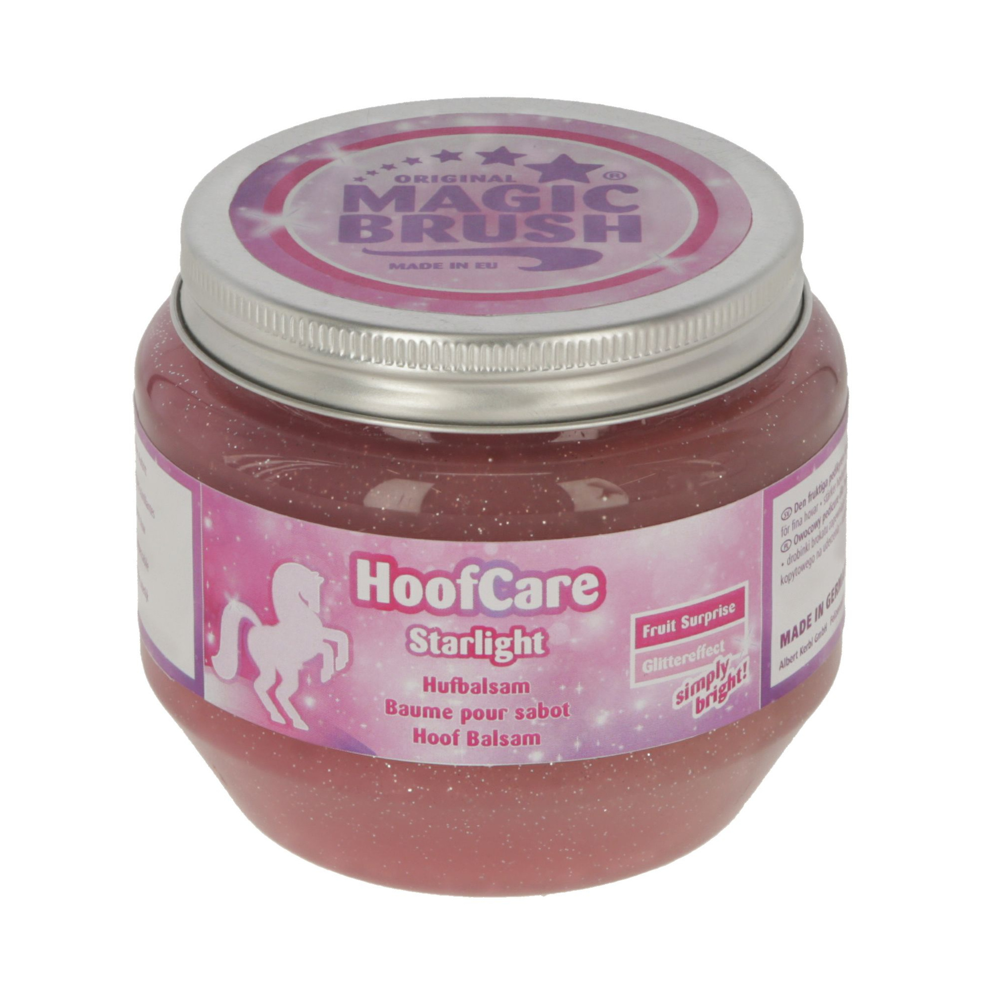 Pferdehufenbalsam von Magic Brush. Es besteht aus hochwertigen Inhaltsstoffen, die die Hufe sehr gut pflegen, für die Stärkung und Widerstandsfähigkeit des Hufhorns sorgen und eine natürliche Pflege der Pferdehufe ermöglichen. Außerdem hat das Balsam Brockattpartikel, die auf den Hufen verbleiben und sehr schön aussehen und ihnen Glanz verleihen. Das Balsam hat einen fruchtigen und beerigen Duft.