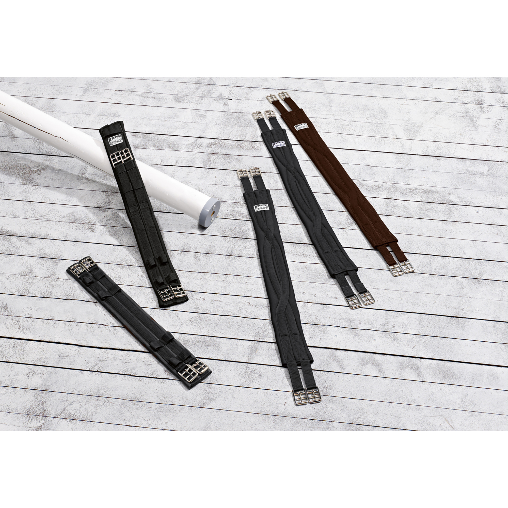 Langer Sattelgurt von Eskadron. Er wurde aus hochwertigem 3,5 mm dickem Neopren hergestellt. Der Gurt schützt den Bauch des Pferdes vor Abschürfungen und gibt dem Pferd zusätzlich Bewegungsfreiheit. Darüber hinaus verfügt er über Metallschnallen aus Edelstahl.