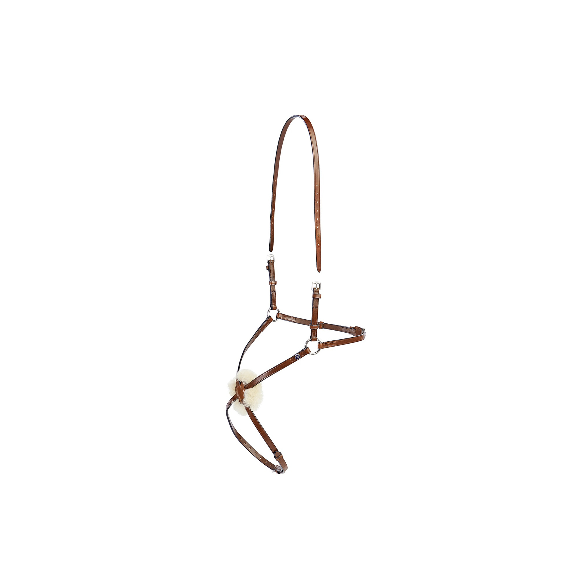 Mexikanischer Nasenriemen, der aus hochwertigem Leder hergestellt wurde. Er wird beidseitig an den Genickriemen befestigt. Das Set enthält einen separaten Genickriemen zur Verwendung mit traditionellem Zaumzeug. Die Nasenriemenrosetten ist mit natürlichem Lammfell gepolstert. Der Riemen unter dem Kiefer hat eine gepolsterte Unterlage unter der Schnalle. Die Metallteile sind aus Edelstahl.