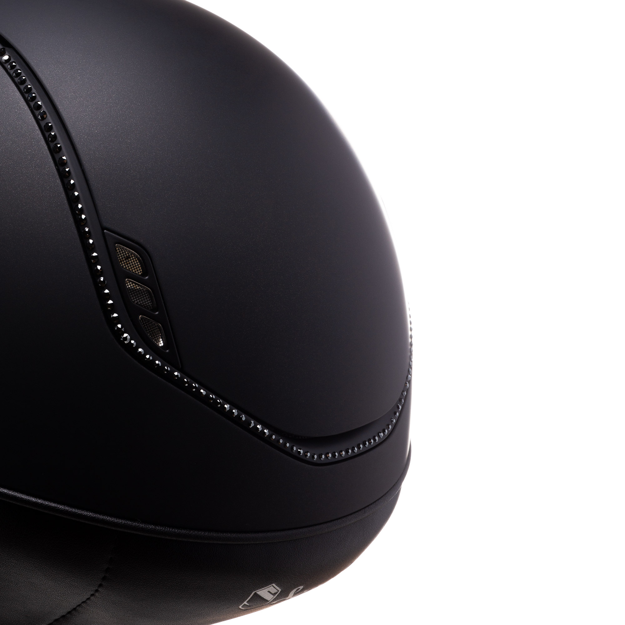 Das Modell Miss Shield Shadowmatt 2.0 ist aus hochwertigen Materialien wie Polycarbonat gefertigt, die in fortschrittlichen Schutzprodukten verwendet werden. Die Oberfläche des Helms ist mit einer kratzfesten Farbe beschichtet. Das neue Finish des Helms ermöglicht es, ihn mit bis zu 300 Swarovski-Kristallen zu personalisieren. Das Innere des Helms besteht aus Polystyrol mit variabler Dichte, das die Aufprallenergie effektiv ableitet.