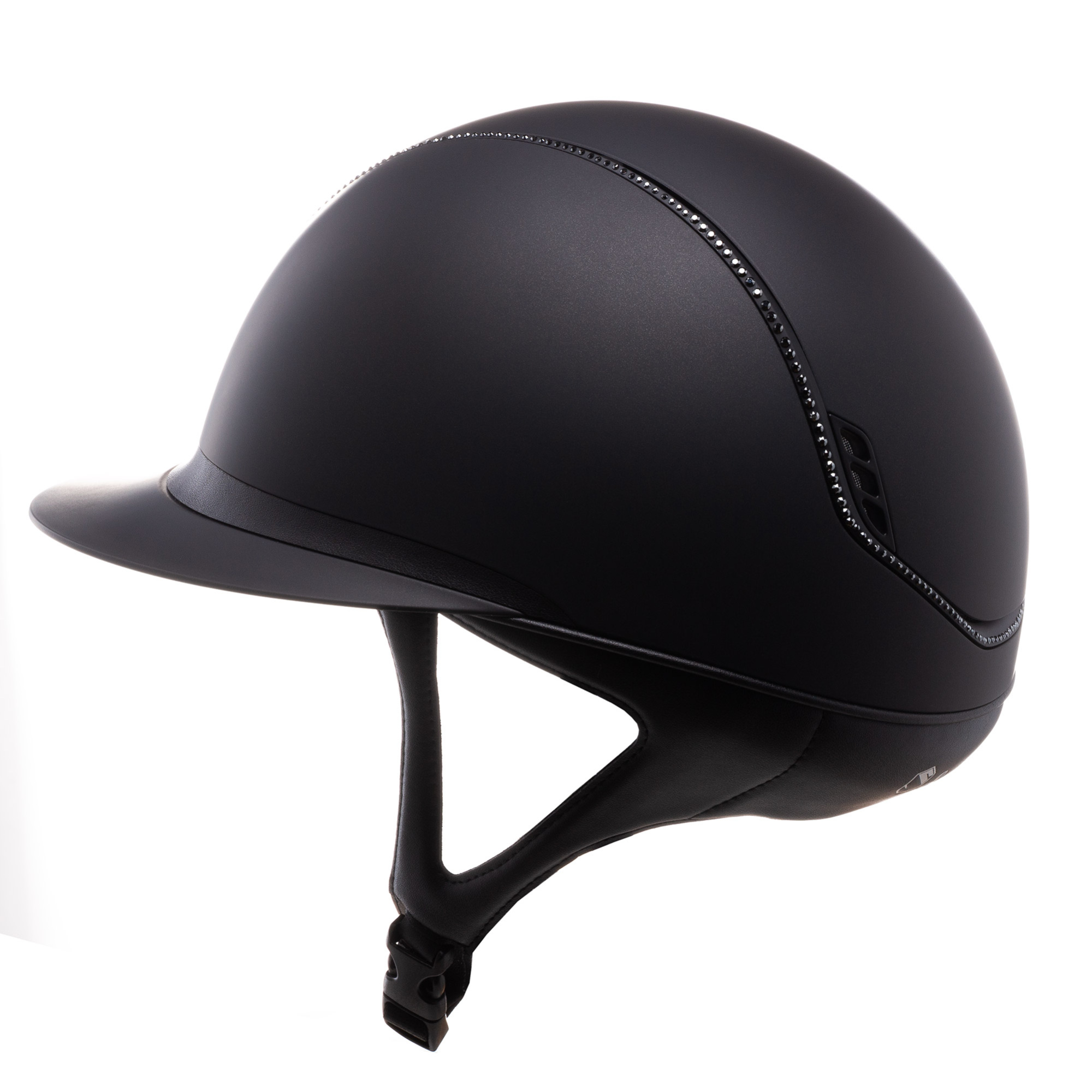 Der Miss Shield Shadowmatt 2.0 Reithelm wurde von der Marke Samshield nach vier Jahren intensiver Forschung entwickelt, um den höchsten Ansprüchen von Reitern gerecht zu werden und eine perfekte Passform zu bieten. Mit einem innovativen Belüftungssystem und modernsten Materialien erfüllt dieser Helm alle Sicherheitsstandards, um ein sicheres Reiten zu ermöglichen. Der Helm ist mit einem mattschwarzen Schild und einer mit Swarovski-Kristallen verzierten Rändern ausgestattet.