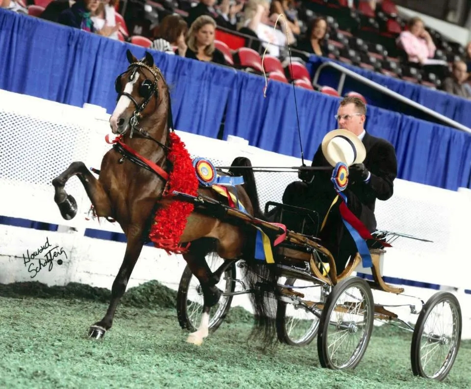 Roadster pony – is a very popular type of the Hackney breed, characteristic of their high speed. They are 52 inches (132 cm) tall or less, presenting three rates of trot during shows: jog, road gait, and speed (full speed).