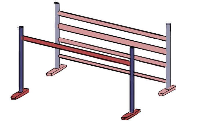 Six-bar – also called a six-fence competition. This type consists of six fences situated one after another in a two-foul distance (around 11 meters). The rules are the same as in the puissance competition.