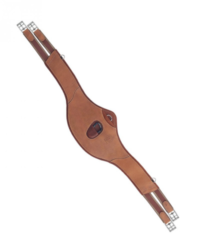 Along with the saddle, I had the chance to check the Renaissance A57 asymmetrical special jumping girth. Beautifully made, with rubbers on both sides, which makes it easy to fit. The stirrup leather has three rings to attach aid reins to them and a central carabiner made of dark metal, which looks really nice. My attention was also drawn to the leather, which is much more durable, and smoother, which is why it nicely fits the horse's belly.