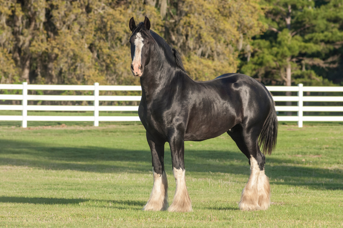 Their legs as well as heads often have various markings. Their characteristic look also includes a thick main, high set tail, and long, lushes featherings, which almost entirely cover flat and big hooves.