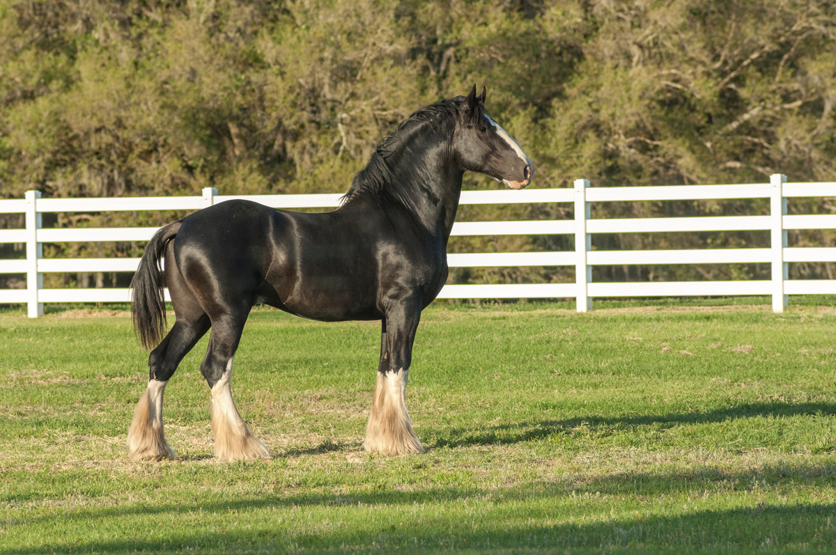 Shire stallions can be black, bay, chestnut, or grey, but not roan, or with multiple markings (not applicable to mares and geldings).
