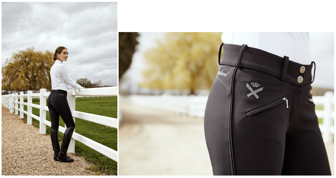 Animo Nuraghi breeches are exceptionally comfortable to use as they are made of elastic breathable fabric. The Nuraghi model nicely highlights the rider's legs' shape, excellently fitting and at the same time not restricting movements. The material is stretchy and soft, very pleasant to wear. The knee grip provides optimal support for the rider's posture in the saddle. The pants are very feminine and elegant, richly decorated with glittering crystals.