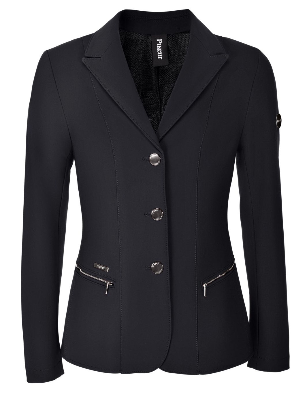Pikeur Manila equestrian junior show jacket is characterized by its elegant cut. It is a model with a highlighted waist that nicely fits the rider’s body. This jacket is made of technical material, which makes it comfortable and practical to use in all weather conditions. It is decorated on the front pockets and the collar.
