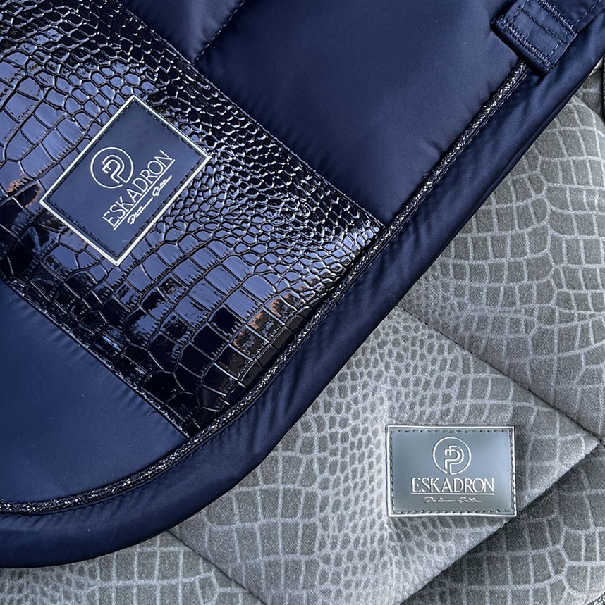 The collection is dominated by muted and elegant colors in shades of green, navy blue and ivory. Despite the not-so-flashy colors, in terms of design, the products in this collection are eye-catching and remarkably elegant, yet they are kept in classic cuts. The Eskadron Platinum 2022 collection includes the popular lightweight Cotton saddle pads, Velvet Croco velvet saddle pads, and the Big Square model, well known from the previous collections. A very nice addition to a pretty set would be a product with fur: boots with bell boots or headcollar. You will also find two models of rugs in this collection – a fleece rug with fur, and a sweat rug. Eskadron Platinum is a perfect proposition for teens and older riders.