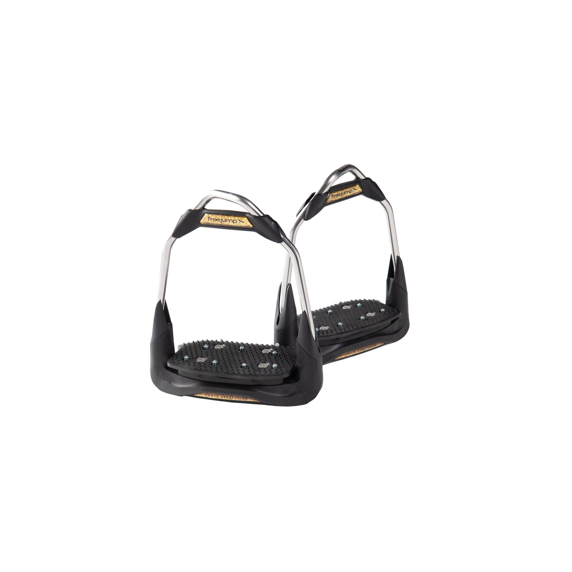 The Freejump Air’s 0-30 stirrups include the Freejump Shock Absorption technology that gives the effect of an “airbag”. Thanks to the possibility of choosing the inclination of the floor, the stirrups offer high comfort and stability. The floor ensures great grip enhanced by removable steel studs. The usage of fiberglass material ensures unbeatable durability.