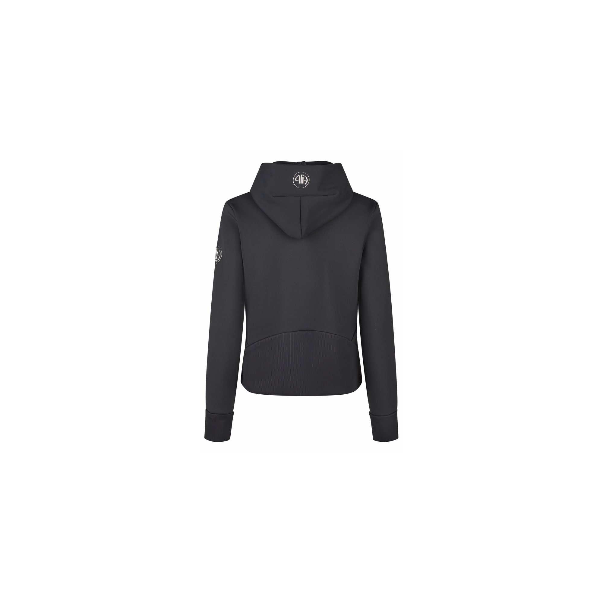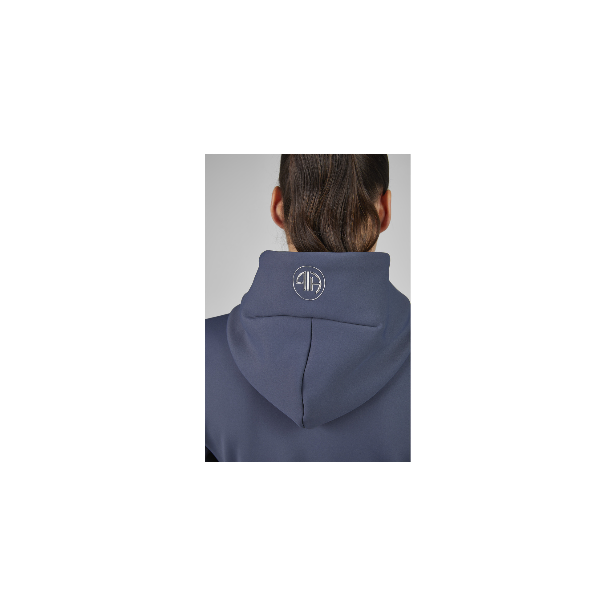 The hoodie features a discreet two-way zipper and side pockets with zippers, allowing you to safely store small essentials. Subtle silver Pikeur Athleisure prints on the sleeve, hem, and hood complete the look. This model is not only perfect for stable and riding activities but also works beautifully as part of casual, sporty outfits.