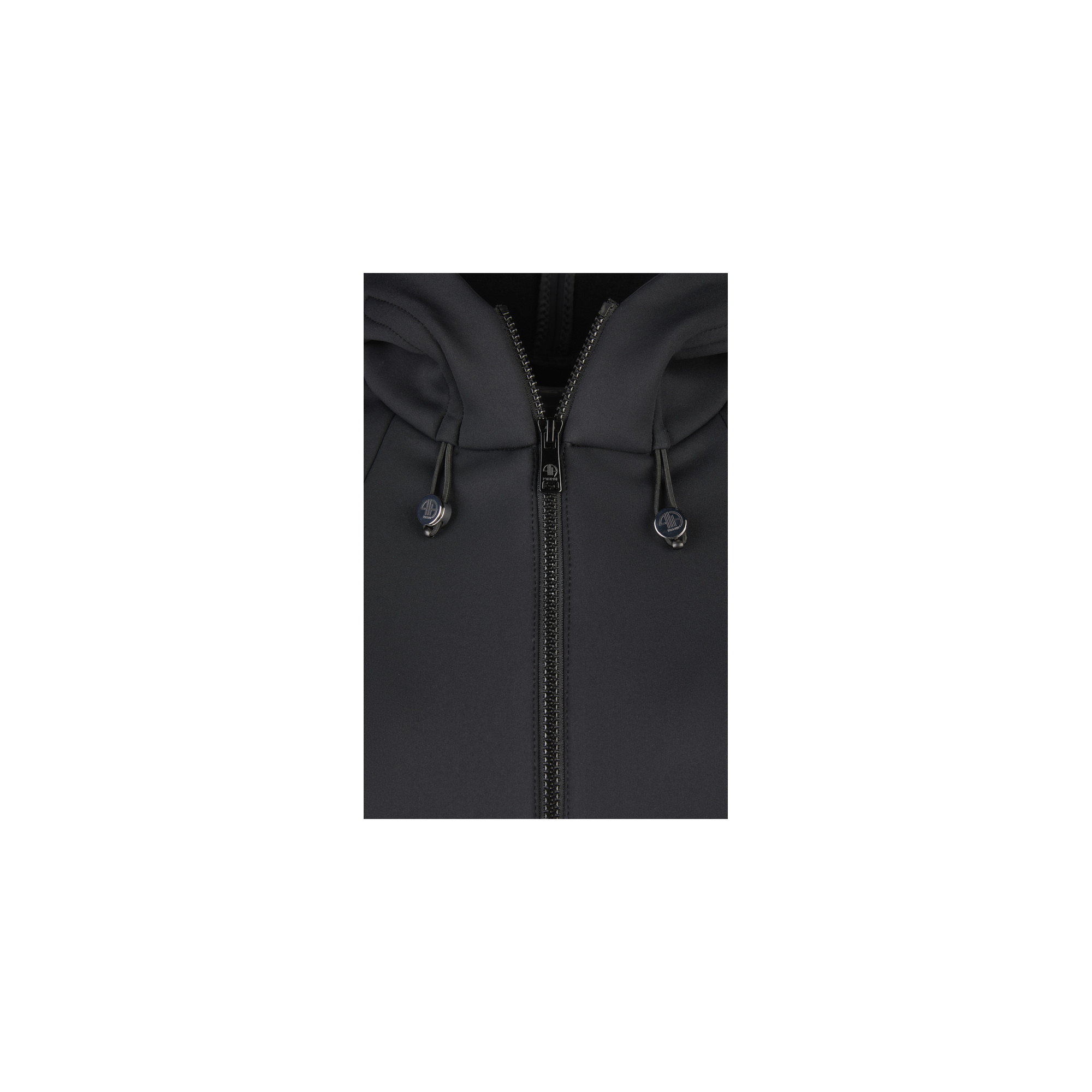 The short, straight cut with a rounded hem gives the hoodie a sporty yet feminine look. The hem and cuffs are finished with a ribbed elastic band, highlighting the modern design while ensuring a comfortable fit. A practical hood with an adjustable elastic drawstring and stopper offers reliable protection against the wind. An additional advantage is the magnet click system, which keeps the hood securely in place while riding.