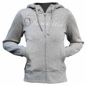 Zip Samshield Hoodie designed for riders. It has a high collar that protects against wind, long waistband at the lower part, which prevents raising the jumper on the back and side pockets with zip. The product is made of high quality materials. Sweatshirt is fitted, which perfectly highlights the feminine silhouette. Samshield sweatshirts are produced in the same factories as worldwide known clothing brand Abercrombrie & Fitch ®. Hoodie lined with a insulating material that provides protection against wind and cold. From the front at the lower part of the right side, the sweatshirt has a leather tab with Samshield logo, and on the sleeve logo decorated with Swarovski Crystals.