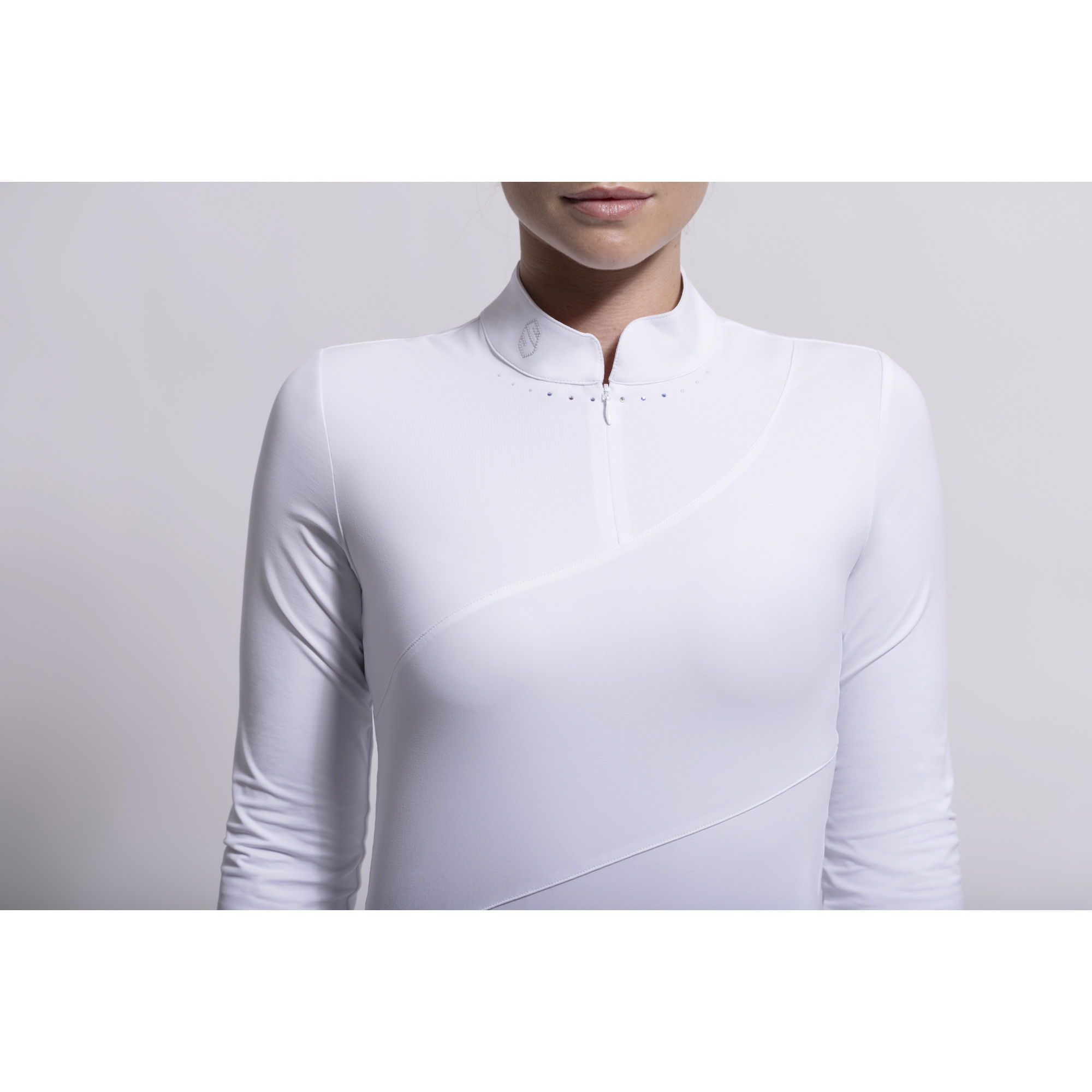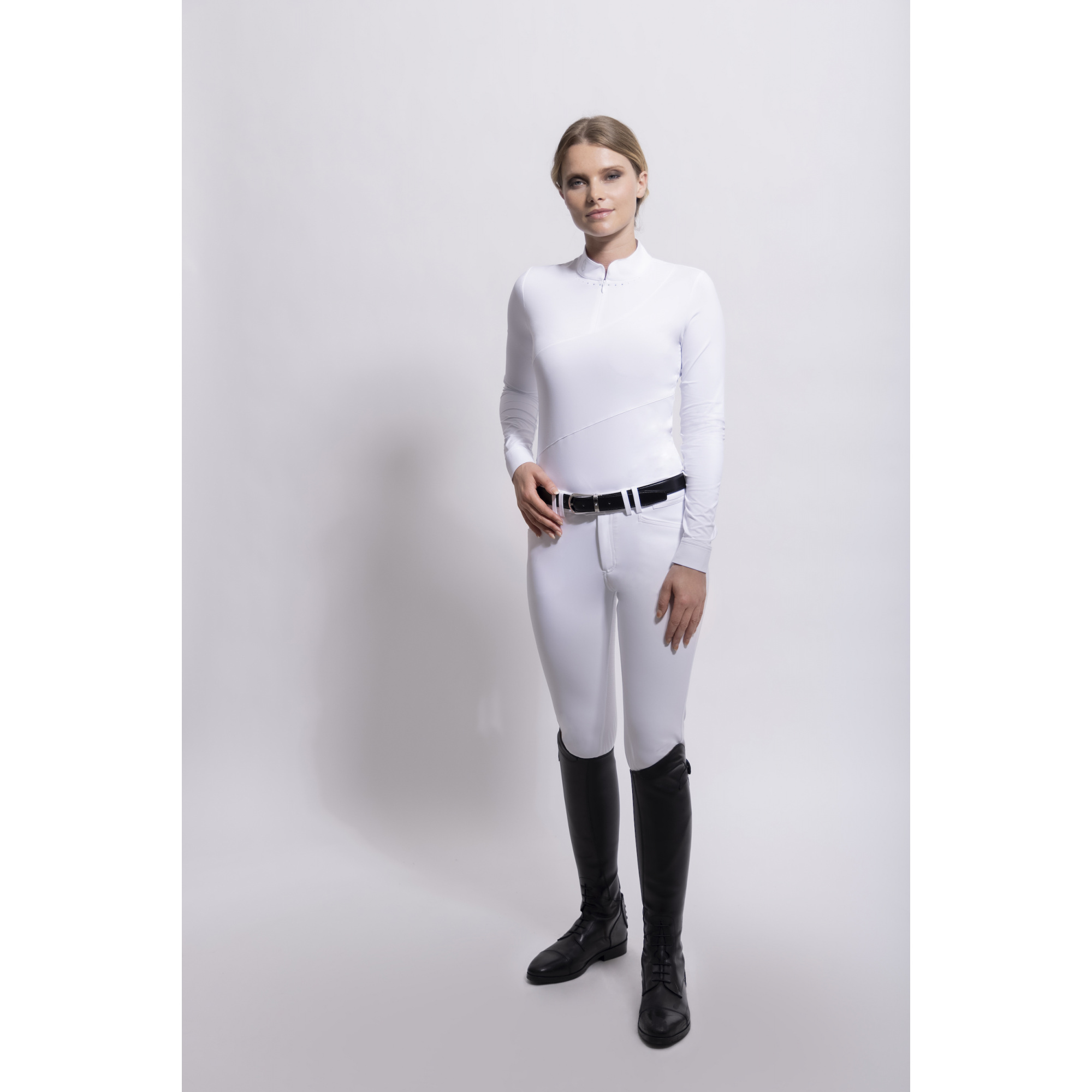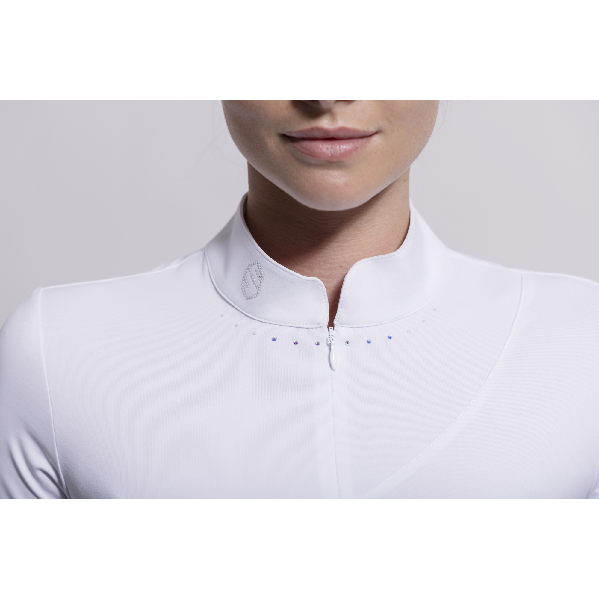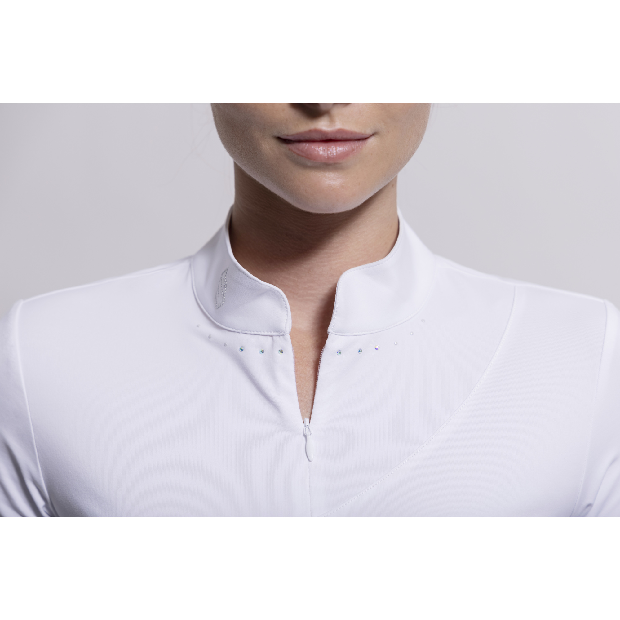 An elegant white show shirt for competitions from Samshield. It was made of high-quality material that is elastic and provides excellent breathability, additionally guaranteeing comfort for the rider and full freedom of movement in the saddle.