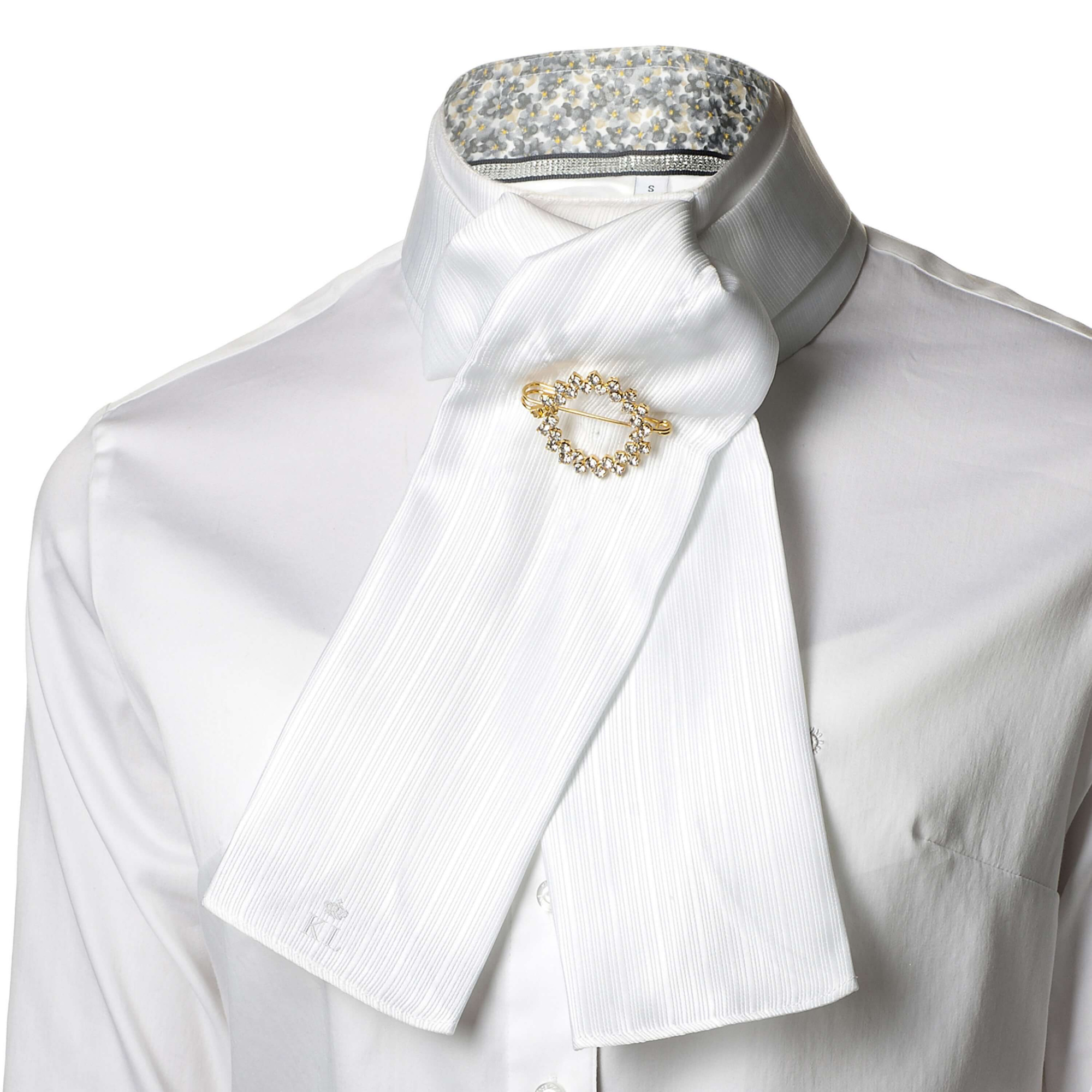 Elegancki biały plastron, wiązany, składający się z dwóch części. Lekko prążkowany materiał. Zapakowany w ozdobne pudełko.