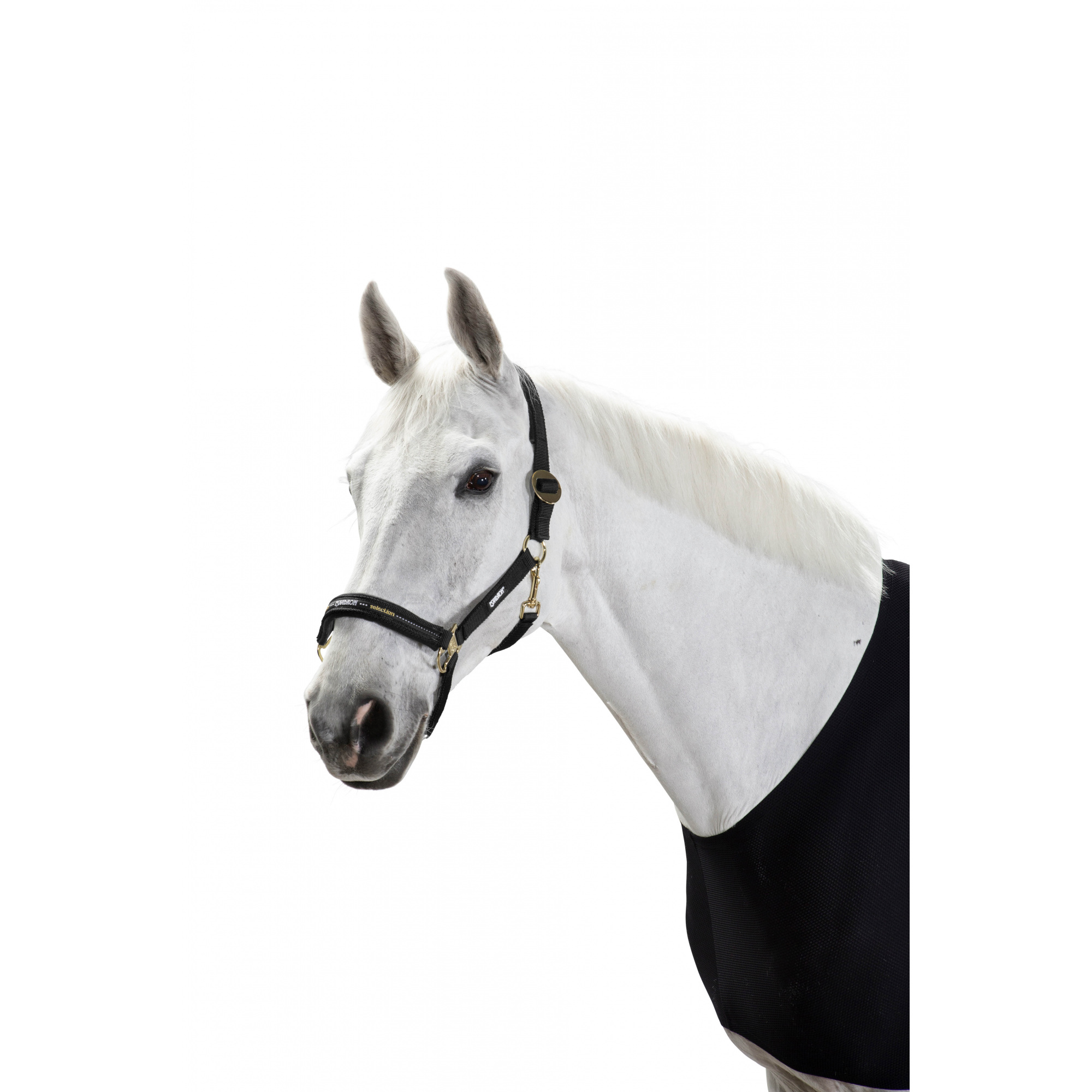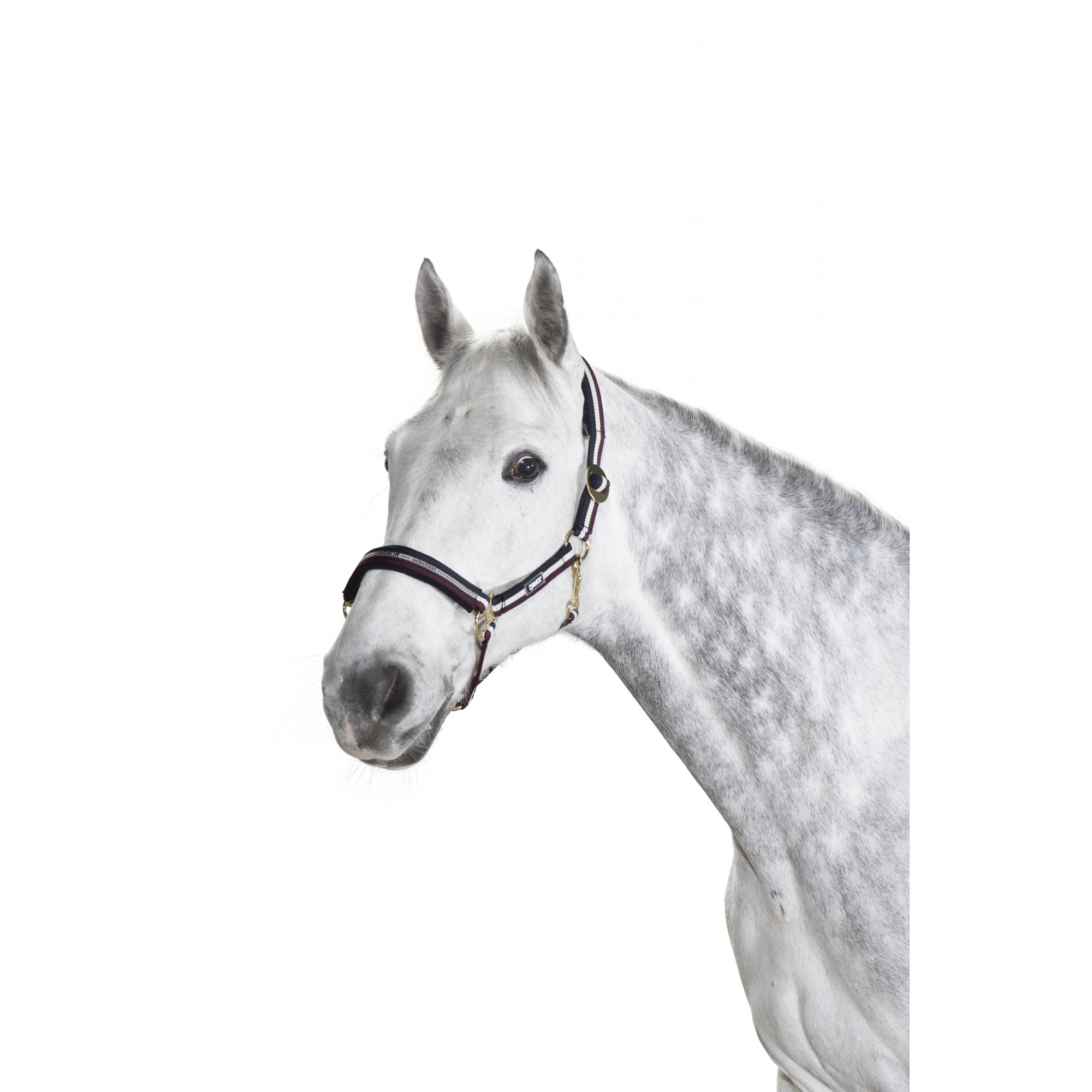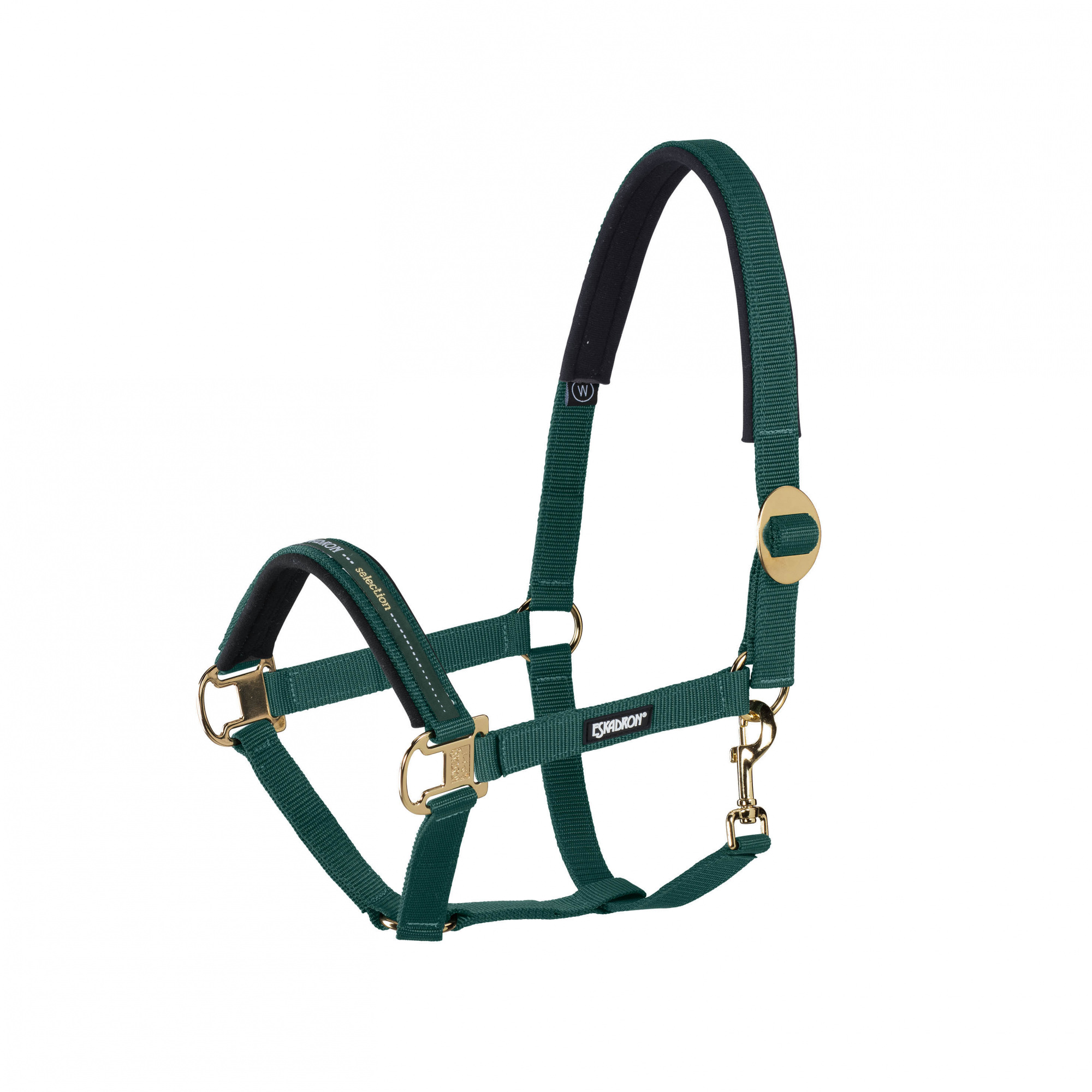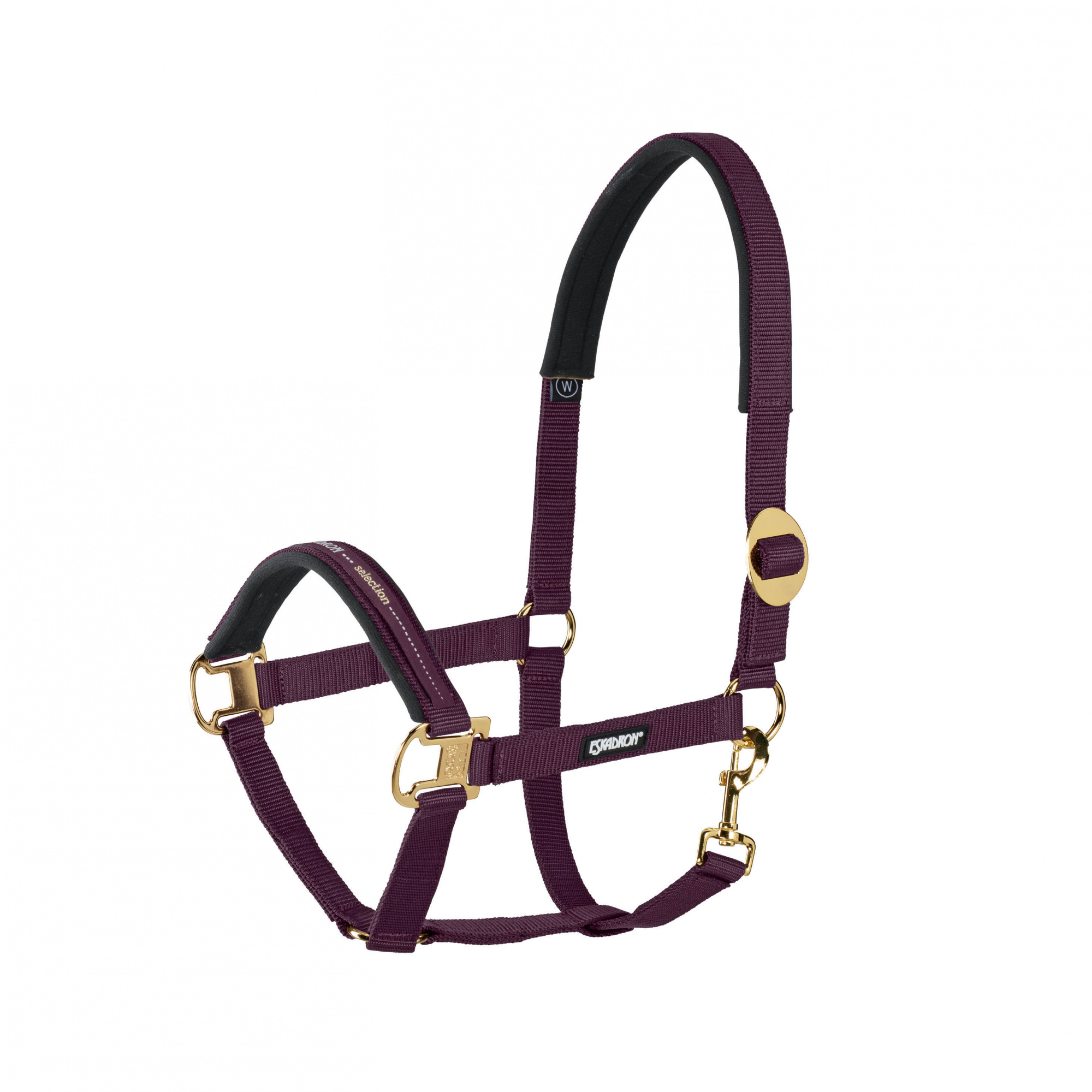 A kötőfék erős, dupla varrott szövet szalagból készült, ellenáll a szakadásnak. Az orr és a tarkó részek puha anyaggal vannak bélelve, hogy megakadályozzák a kidörzsölést. A kötőfék egy csúszó csattal rögzíthető, ami segíti a jó beállítást és lehetővé teszi a ló fejéhez való igazítást. Arany színű fém csatokkal rendelkezik. Több színben és méretben kapható.