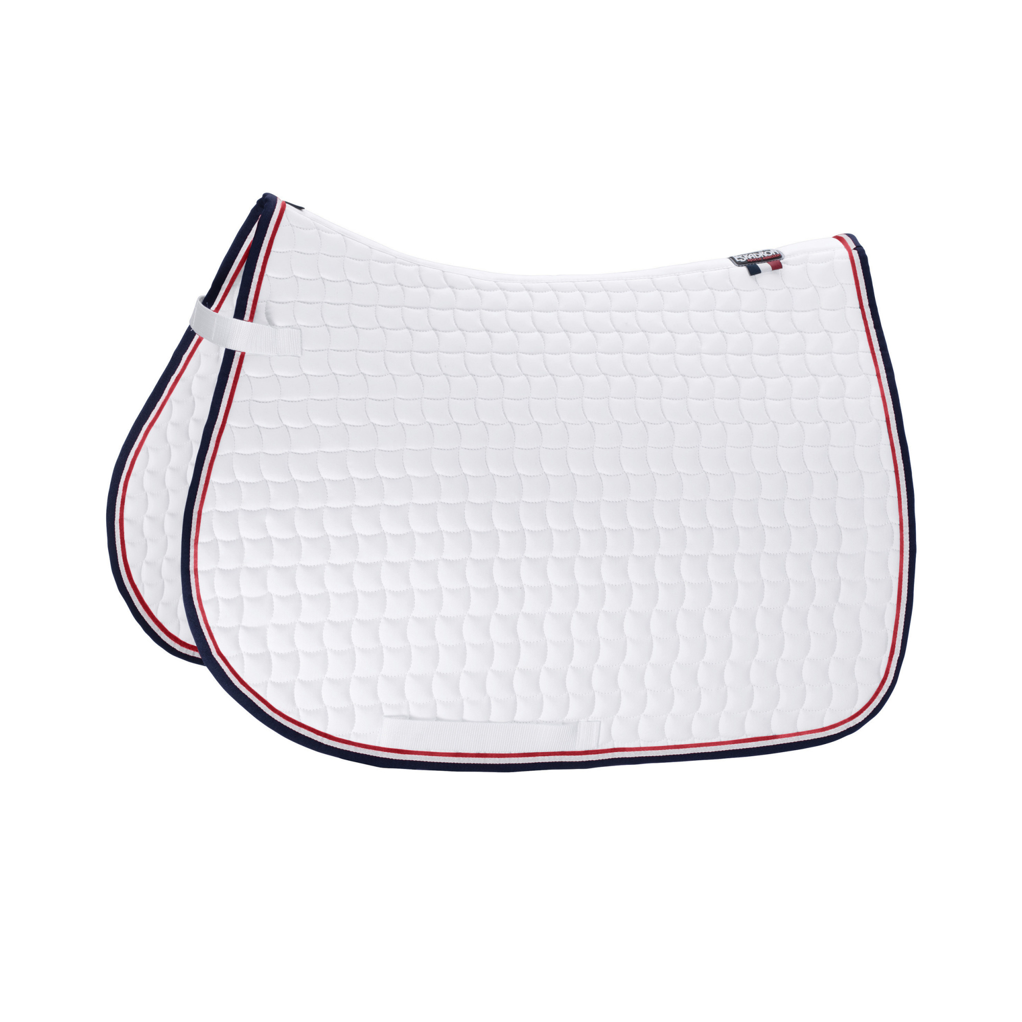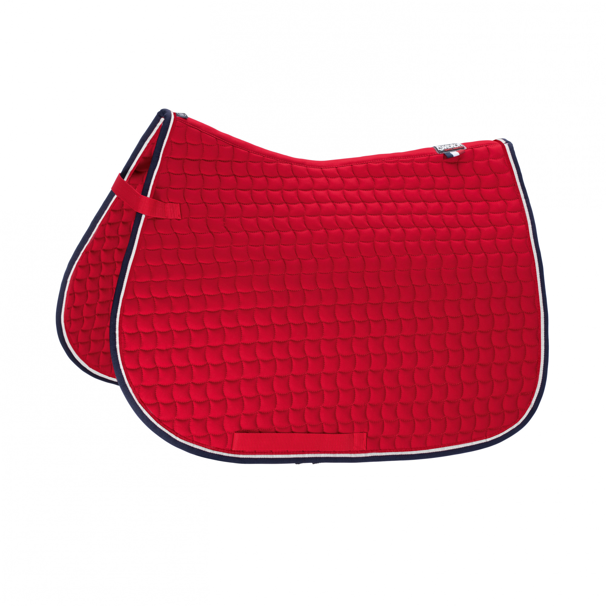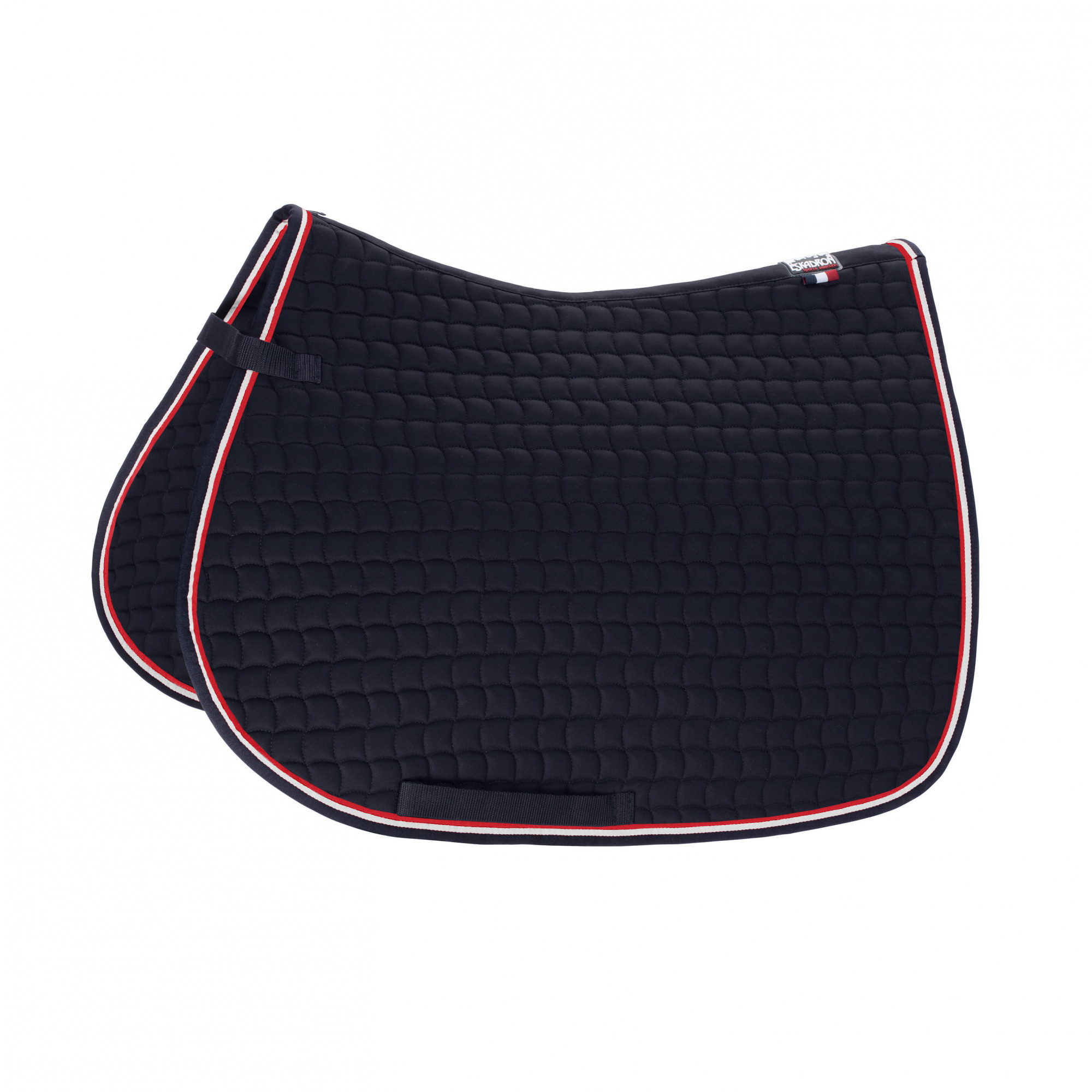 Finoman steppelt klasszikus nyeregalátét az Eskadron márka Sport Collection kollekciójából. Kiváló minőségű anyagból készült, amely kiválóan elvezeti a nedvességet és jó szellőzést biztosít. A nyeregalátét tökéletesen védi a ló hátát a pontnyomástól és a kidörzsöléstől. A nyeregalátét elülső részére a nyereghez rögzítő pánt került, amely megakadályozza, hogy a nyeregalátét kicsússzon a nyereg alól, a középső részen pedig a heveder átbújtatására szolgáló pánt található. A felső részére dekoratívan Eskadron logóval ellátott plakett került.