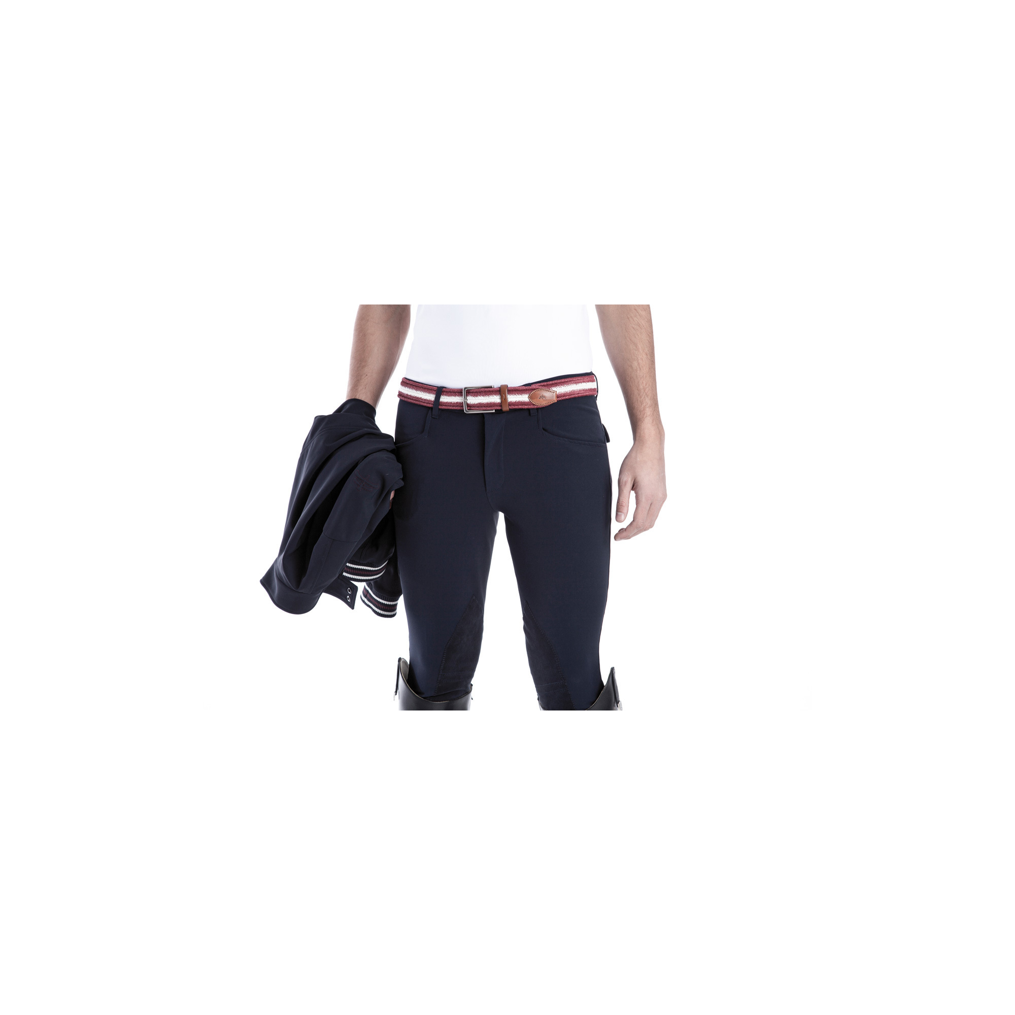 Męskie bryczesy jeździeckie firmy Makebe. Wykonano je z oddychającego i komfortowego dla skóry materiału, który jest dobrze dopasowany do sylwetki jeźdźca.