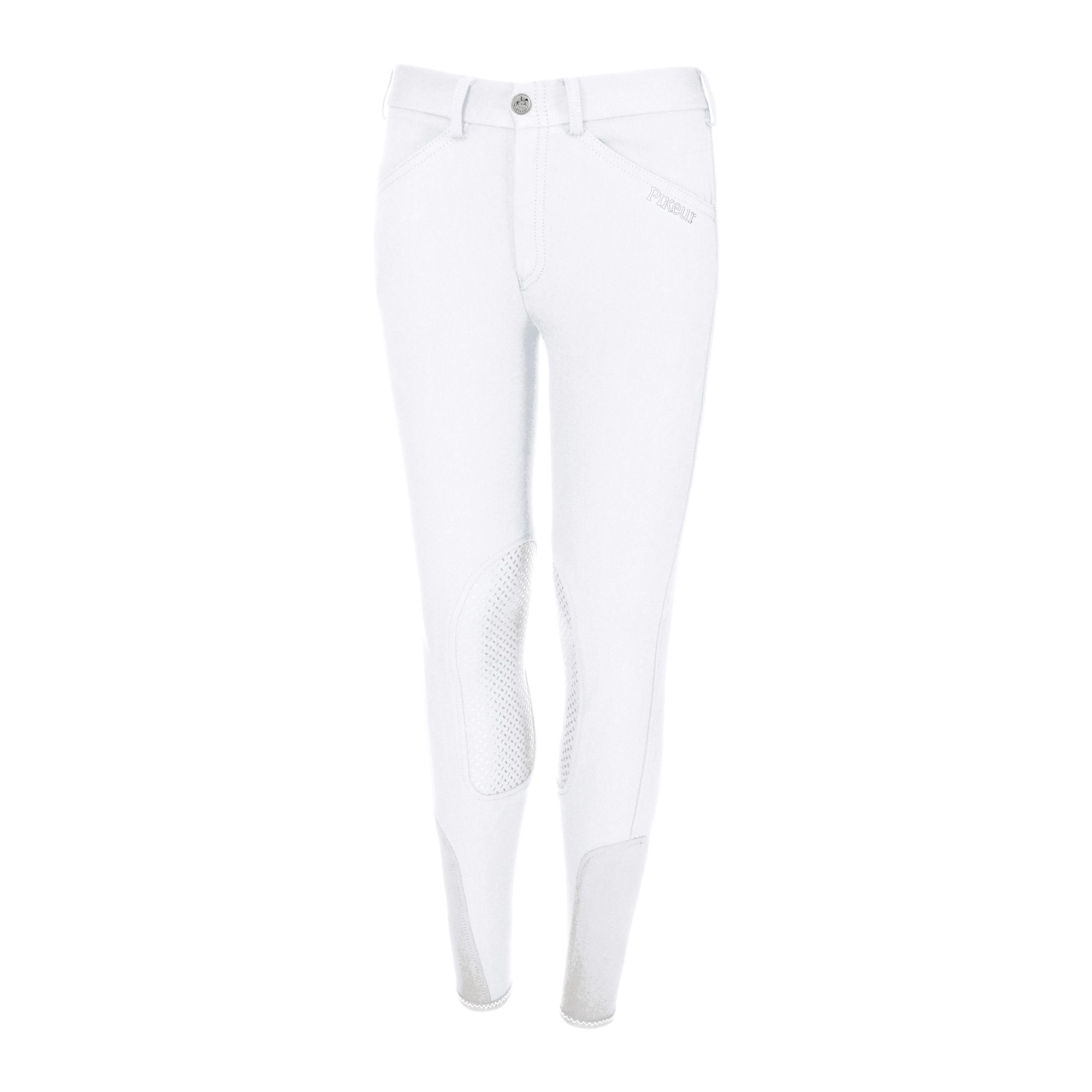 Pikeur lány lovaglónadrág. Nagyon jó minőségű elasztikus anyagból készültek, légáteresztőek és kellemesek a bőrnek. Ezen kívül szilikon térdfolttal is fel van szerelve, ami megvédi a térdeket a kidörzsölésektől. A felső részen két zseb található, a derekán övbujtatók találhatók. Ez a lovaglónadrág modell tökéletes mindennapi lovagláshoz vagy lóval való bármilyen edzésekhez. A zseb fölé dekoratívan egy Pikeur logóval ellátott applikáció került.