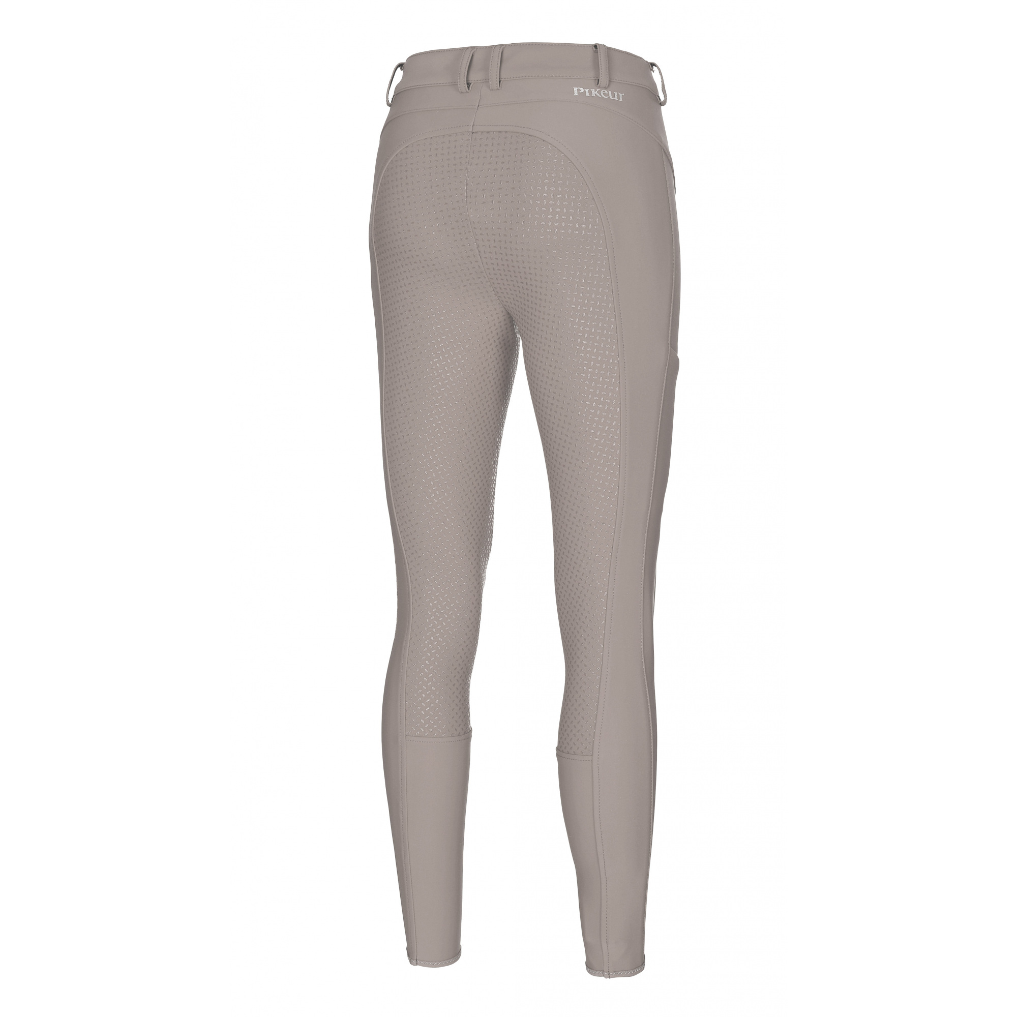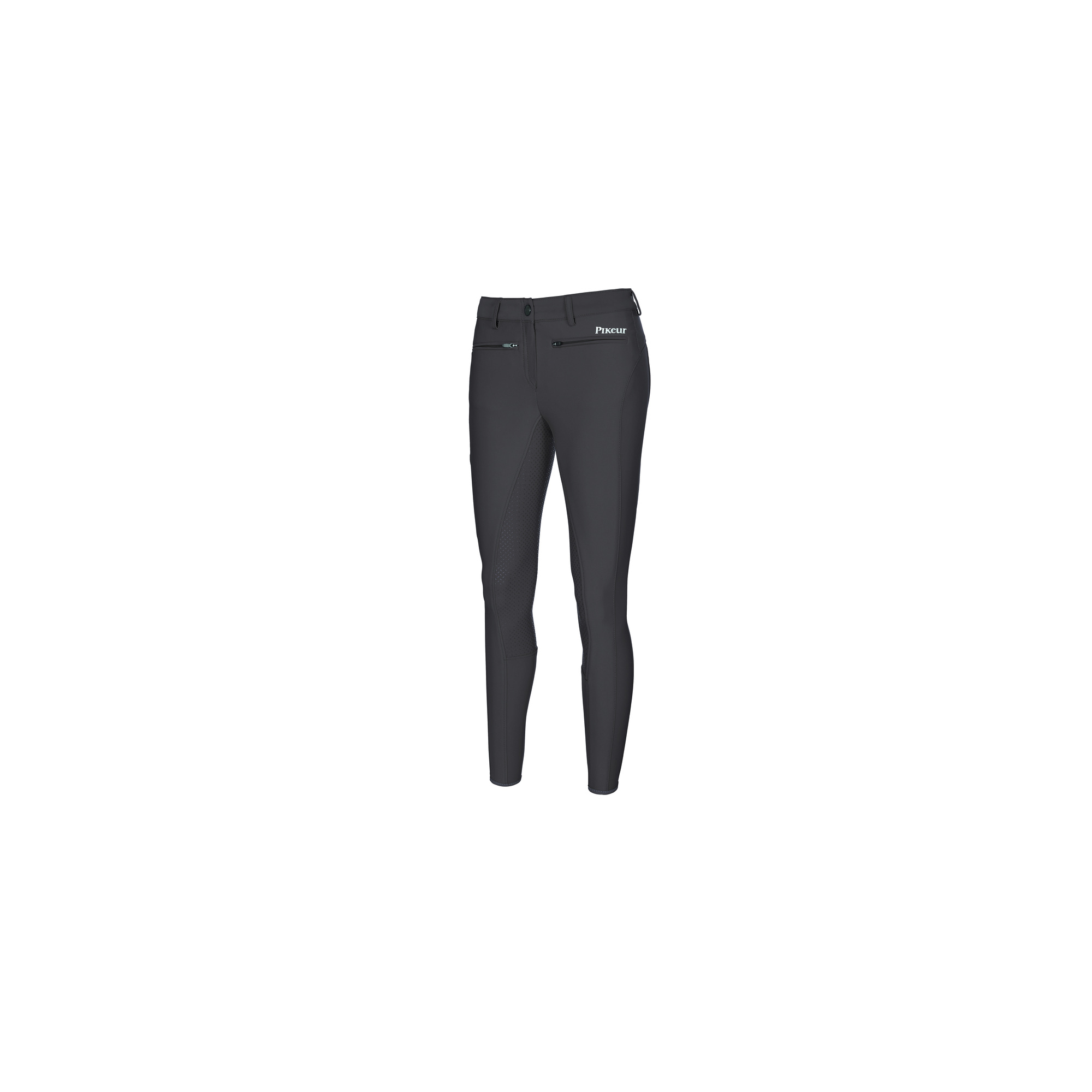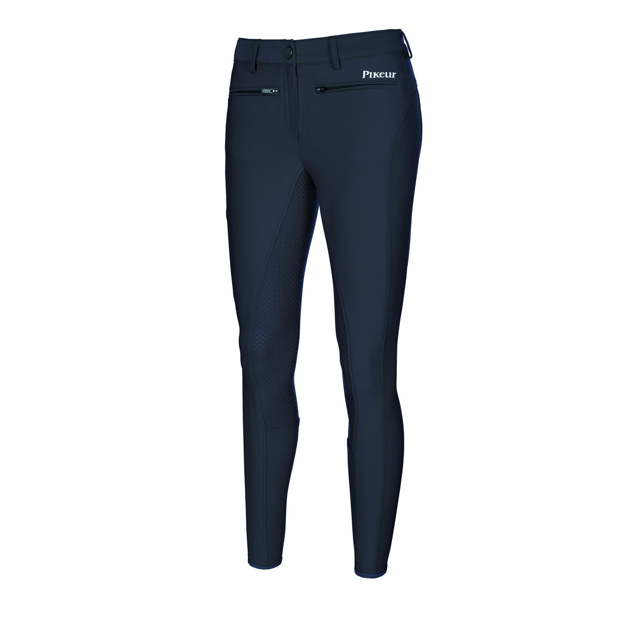 Női lovaglónadrág teljes szilikon betéttel - grippel, amely kényelmet és stabilitást biztosít a nyeregben. Minden irányban nyúló, a legjobb minőségű stretch anyagból készült ruházat. Légáteresztő és rendkívül kényelmes. Elől két cipzáras zsebük van, a combon pedig egy rendkívül funkcionális zsebbel rendelkeznek. A lábak rugalmas betéttel vannak befejezve. Kis Pikeur felirattal díszített nadrág.