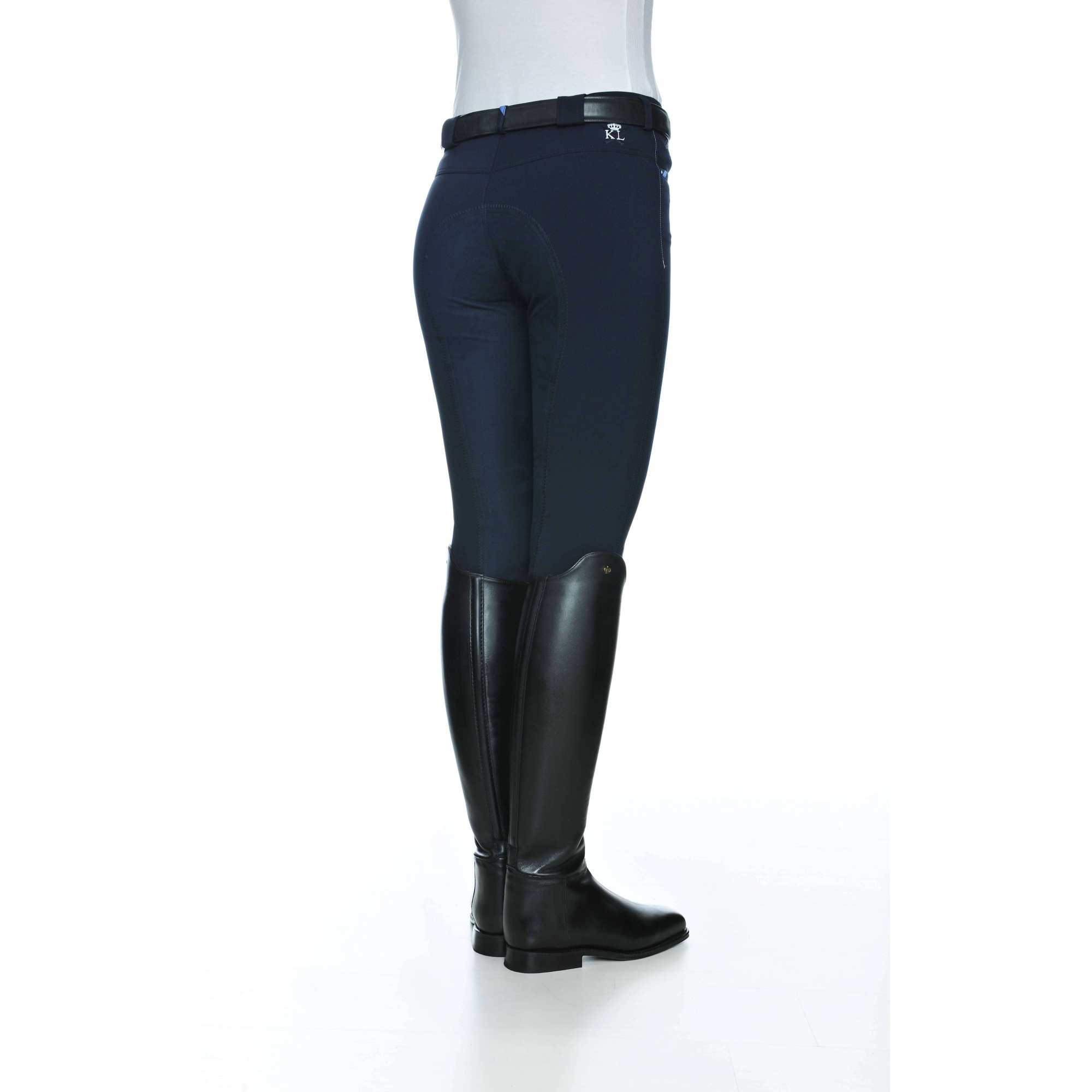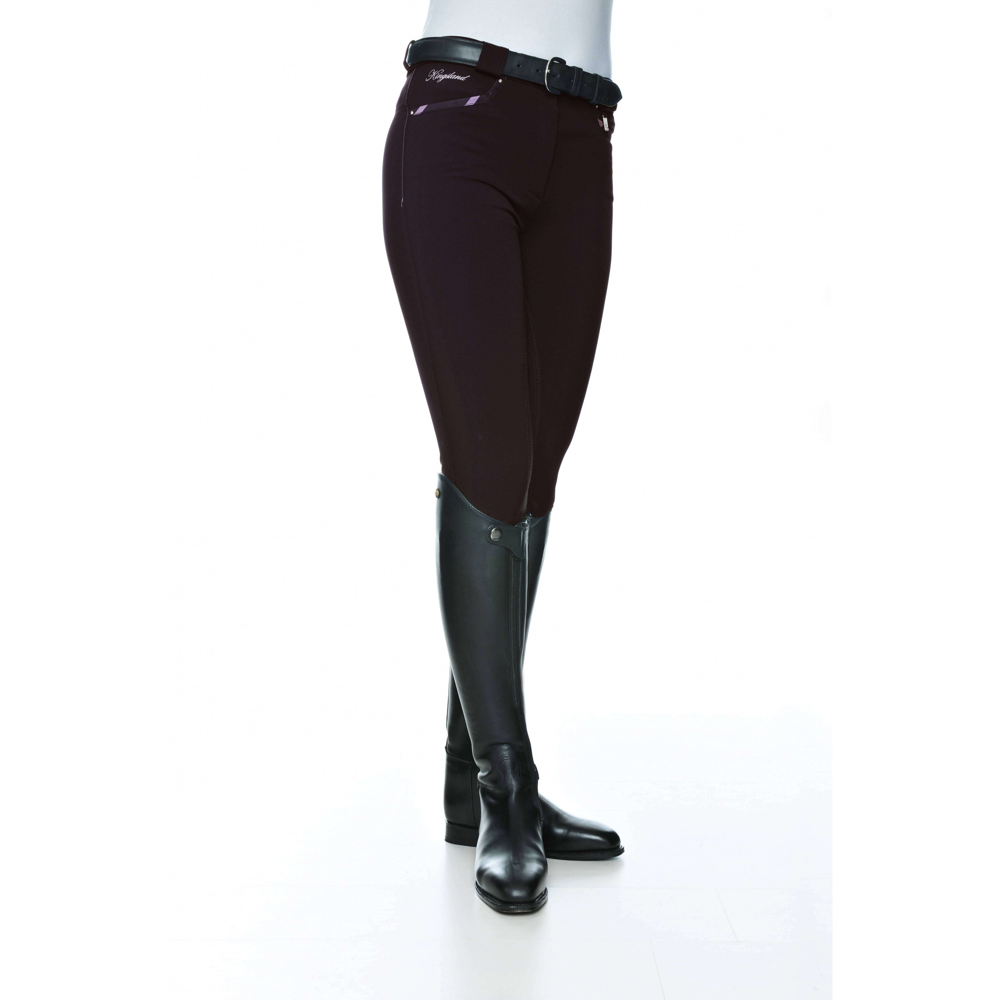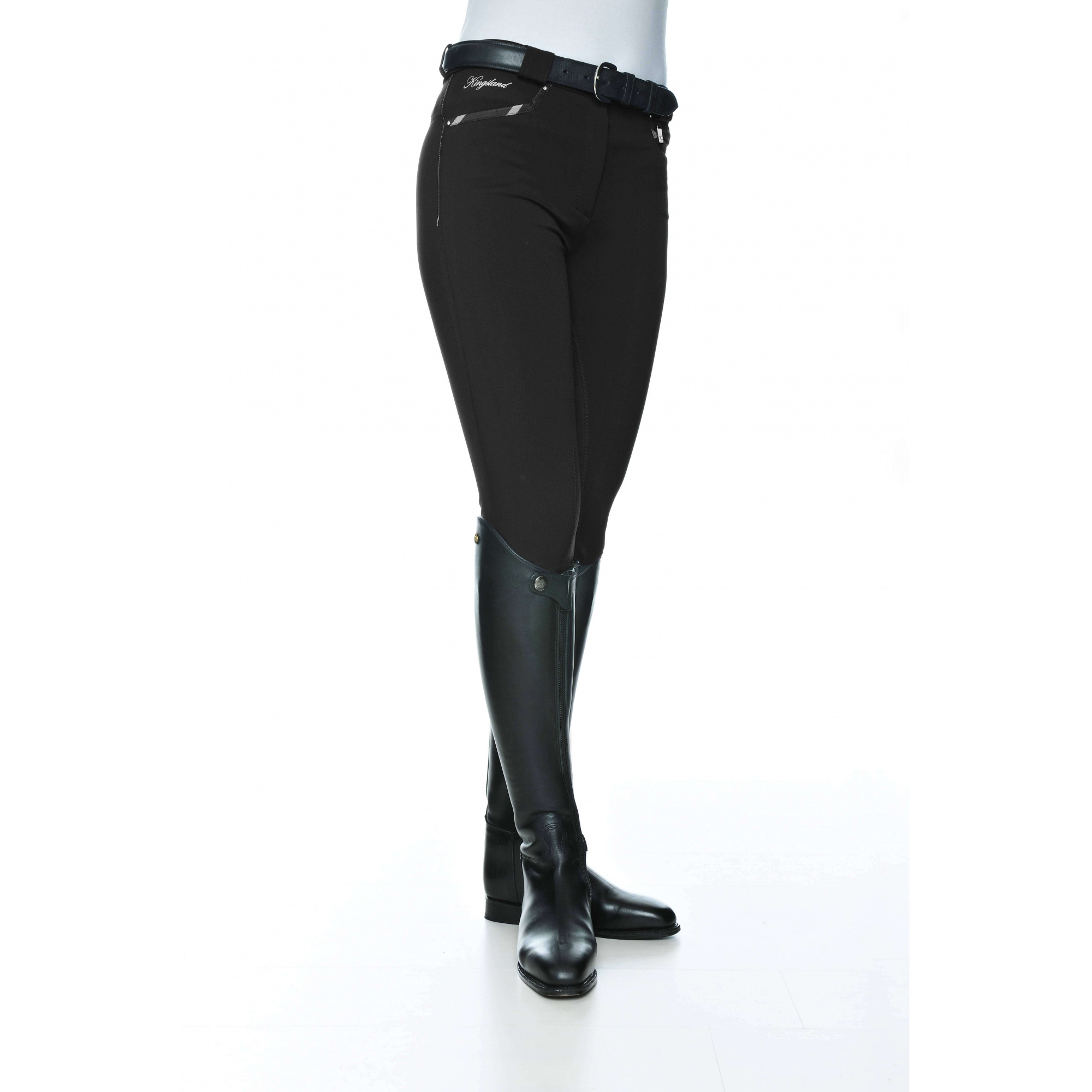 Damskie bryczesy Kingsland z kolekcji Dressage. Wykonane z wytrzymałego, lekko elastycznego materiału zapewniając duży komfort podczas jazdy. Nogawki zakończone nie rzepem - a elastyczną wstawką. Dobrze dopasowane do figury. Z przodu posiadają ozdobne emblematy i loga Kingslanda. Bryczesy posiadają pełny lej.