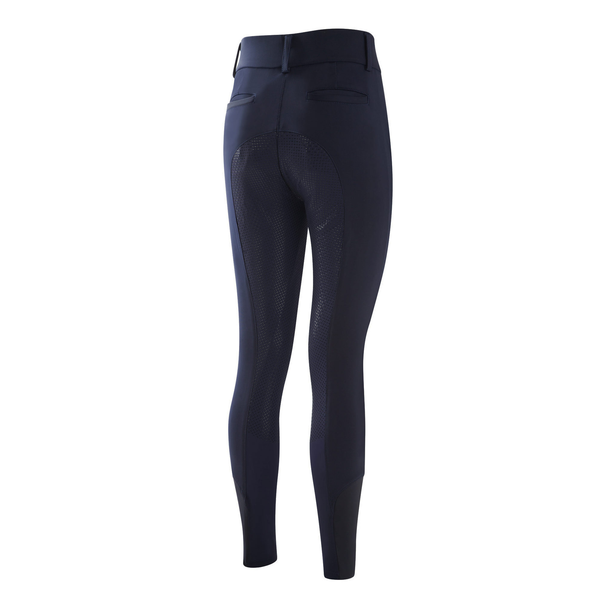 Bryczesy posiadają pełny lej silikonowy, który nie krępuje ruchów podczas jazdy. Silikon znajdujący się po wewnętrznej stronie spodni jeździeckich jest specjalnie wtłoczony dzięki czemu dłużej utrzymuje się na materiale.