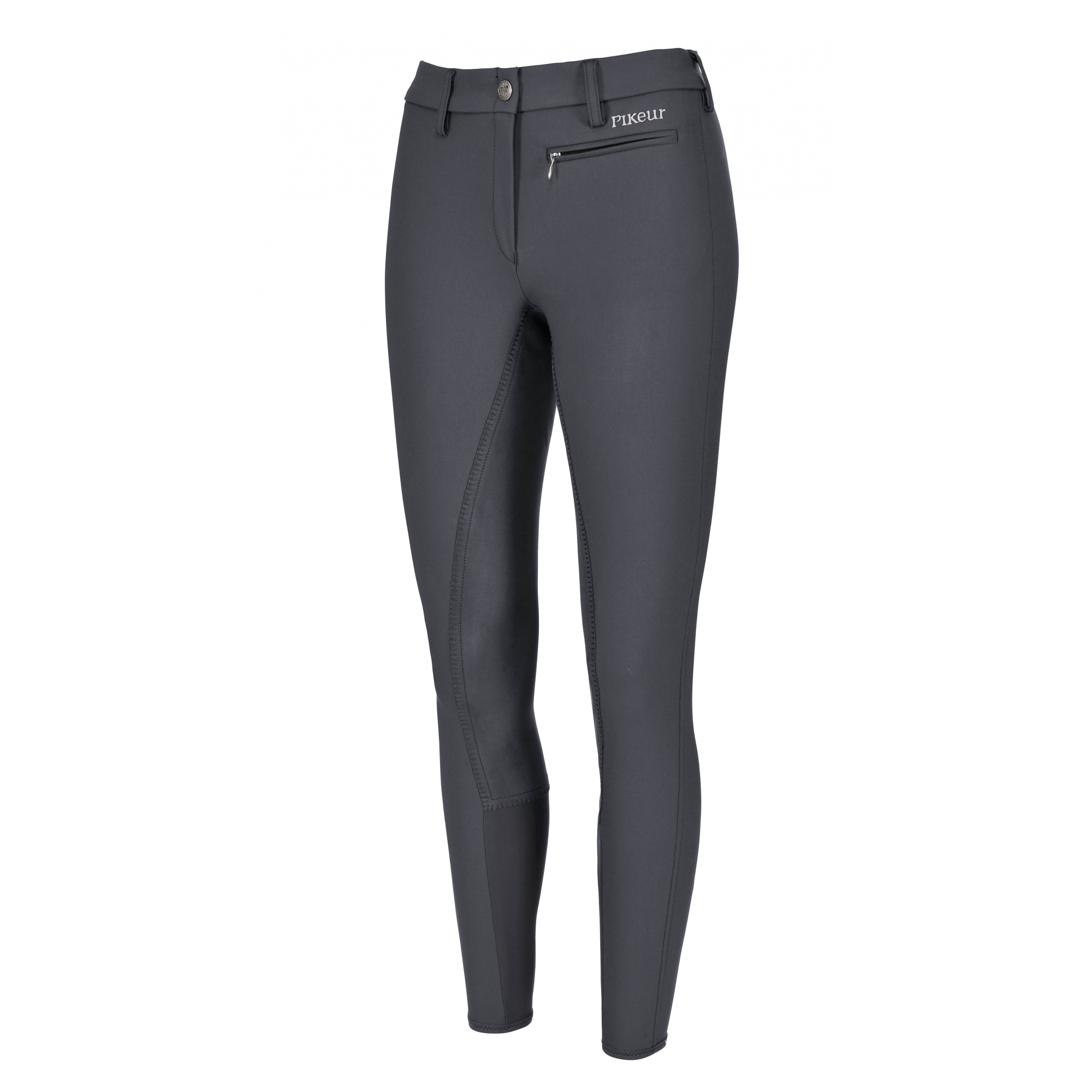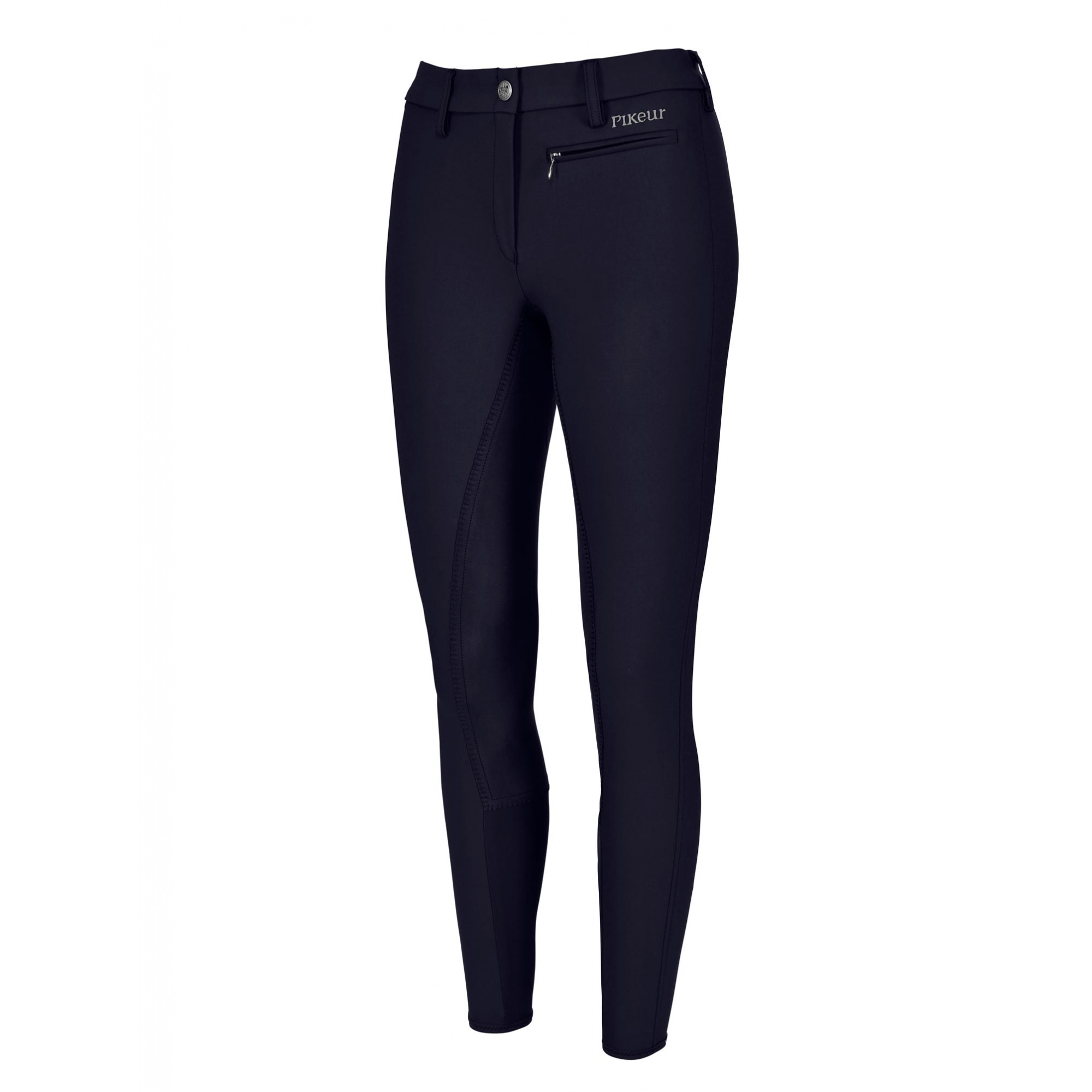 A Lugana Stretch lovaglónadrág kiegészíti a Pikeur klasszikus kollekcióját. A lovaglónadrág klasszikus bőr üleppel rendelkezik. A klasszikus modelltől eltérően a Lugana Stretch dereka 1 cm-rel mélyebb és 2 cm-rel szélesebb. Elől cipzáras zseb található. A zseb fölött ezüst cérnával a márka neve lett ráhímezve. A lovaglónadrág széles övbujtatókkal rendelkezik, így nem okoz gondot az öv hozzáigazítása. A lábak belső részére elsztikus anyag került.