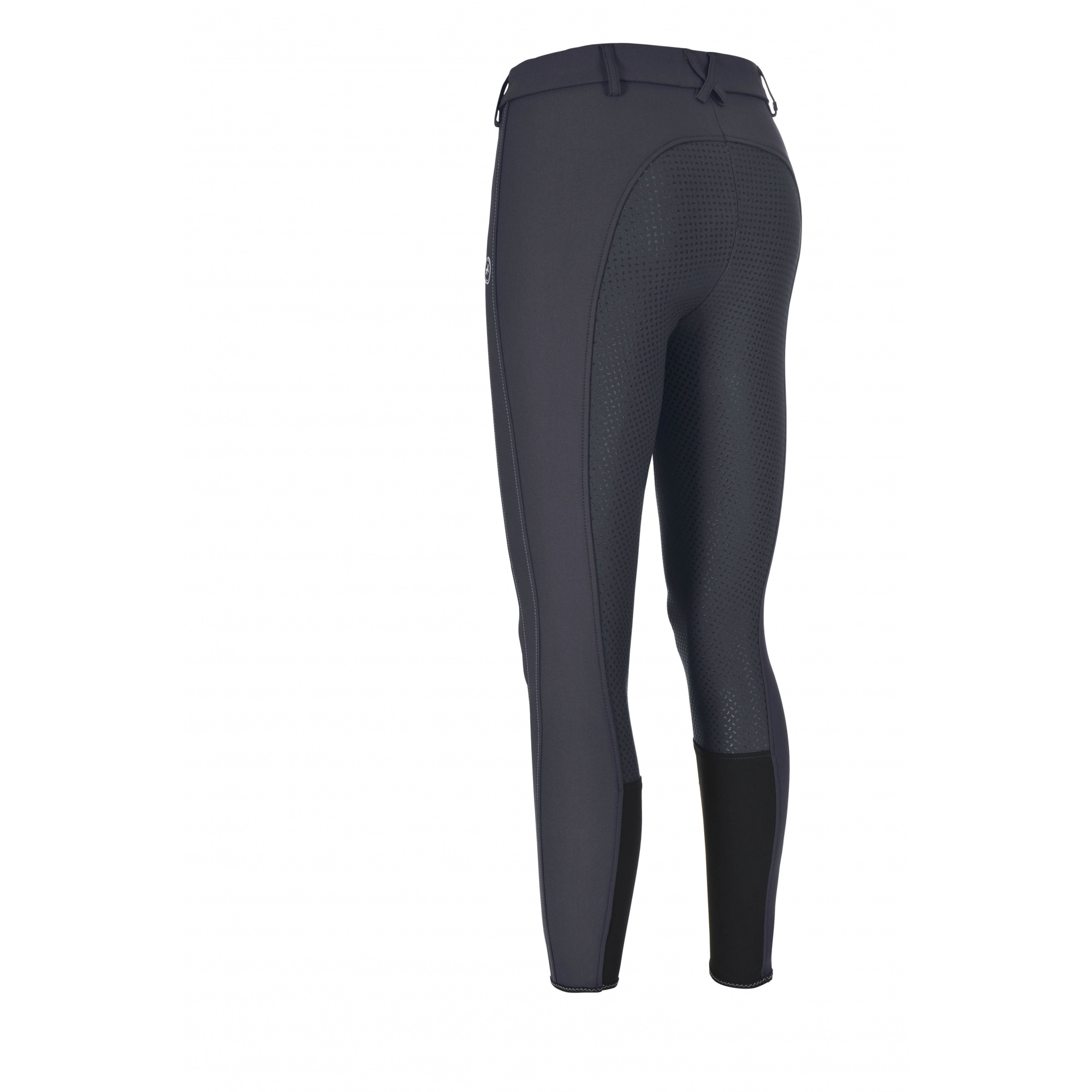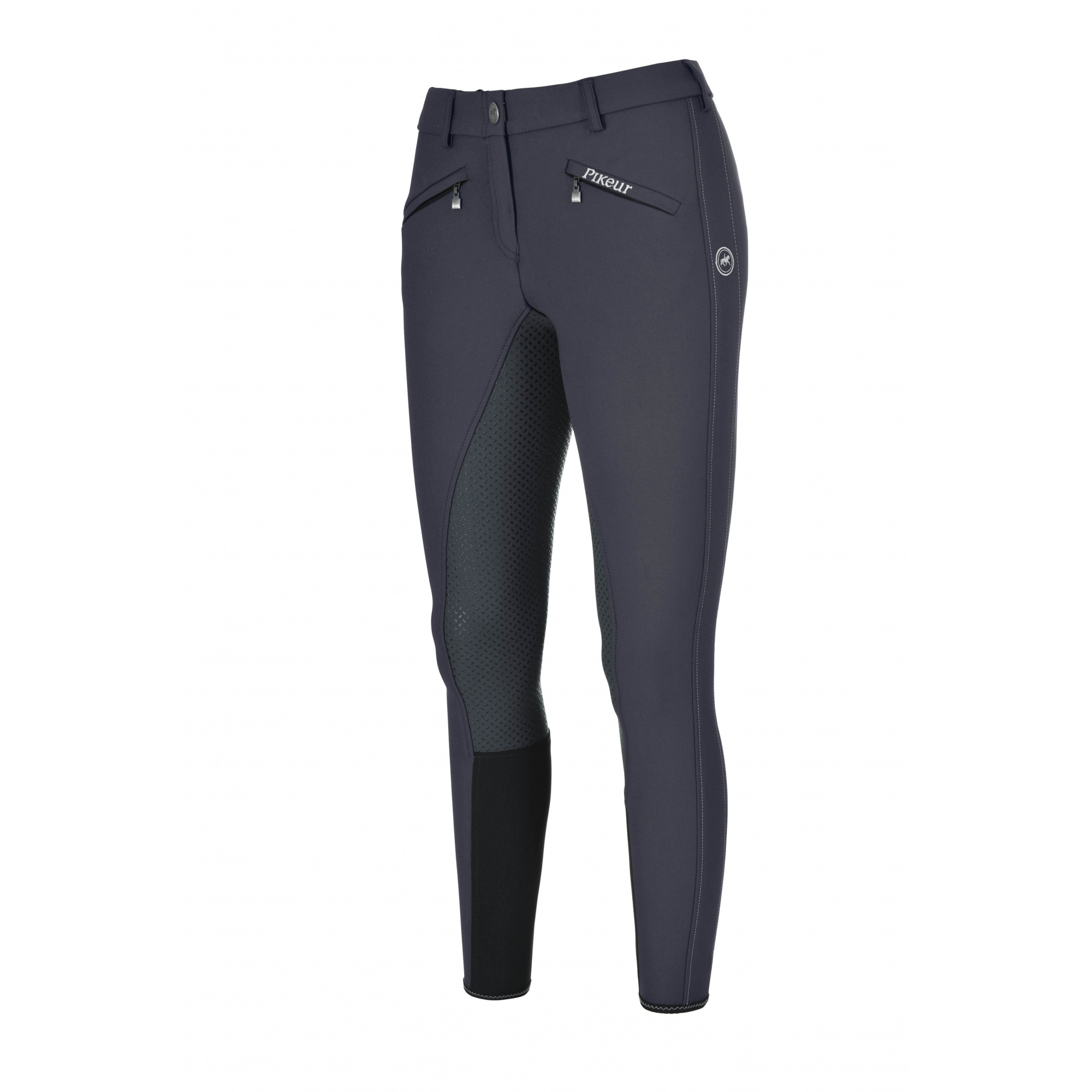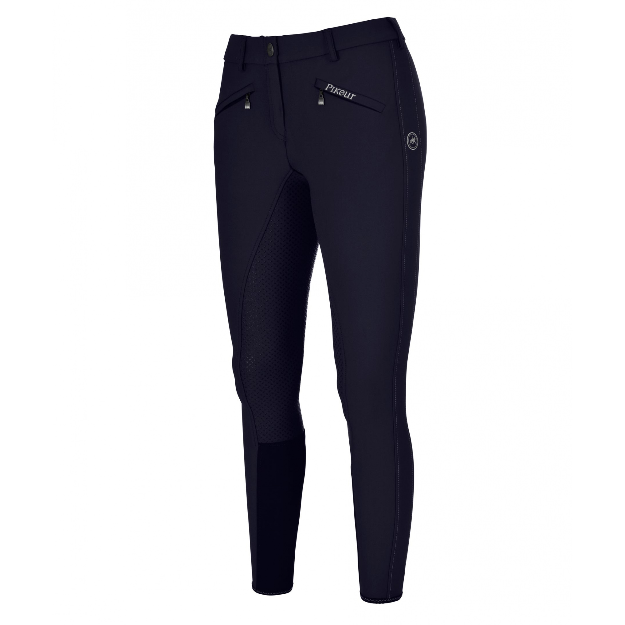 A klasszikus Pikeur kollekcióból származó Latina Grip teljes szilikonos üleppel ellátott lovaglónadrág, amelynek köszönhetően jobb tapadást biztosít a nyeregben. A lovaglónadrág oldalán két csík van bevarrva, melyeket hímzett Pikeur logó díszít. A lovalgónadrágon két átlósan varrott, cipzárral záródó zseb található. A nadrágon széles övbujtató hurkok találhatók, amihez könnyedén választhatunk övet. A lábszár közepétől belül elasztikus anyagot varrtak, aminek köszönhetően a nadrág tökéletesen illeszkedik a lábszárhoz.