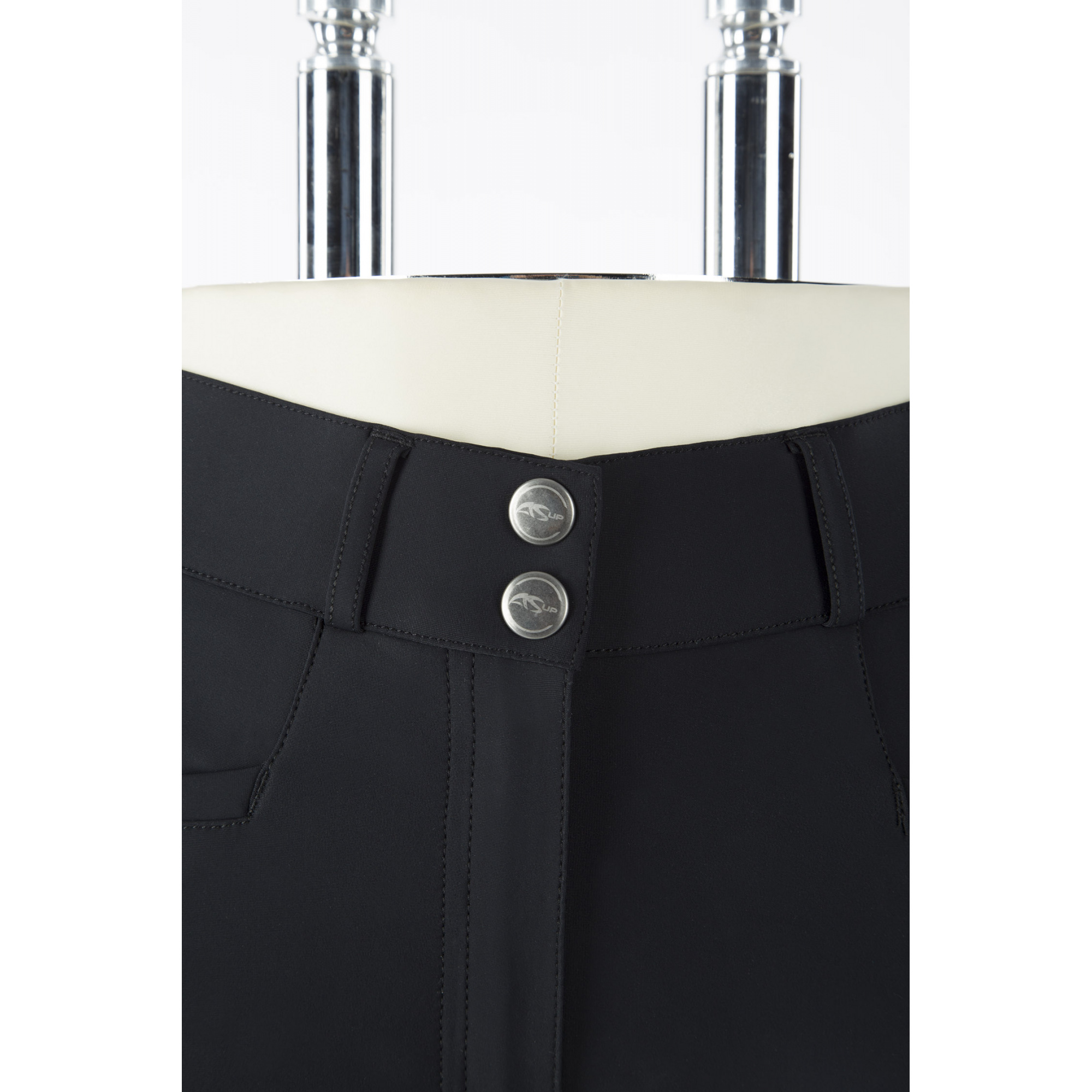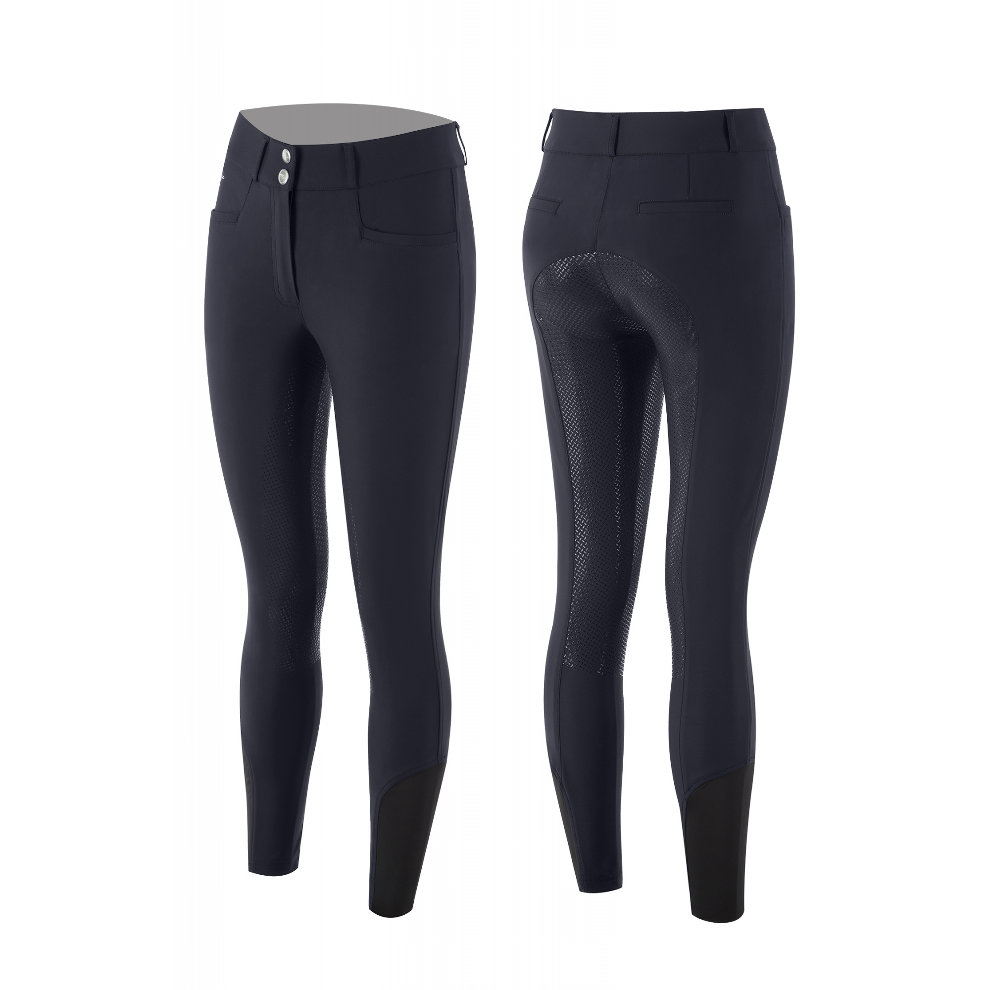 A lovaglónadrág kiváló minőségű elasztikus anyagból készült, amely alkalmazkodik a lovas lábához, ugyanakkor nem korlátozza a nyeregben való testtartást. A kissé magasabb derékrész formálja az alakot. A lovaglónadrág két elülső zsebbel és a lábak alján elasztikus betéttel van ellátva, aminek köszönhetően a nadrág nem tekeredik fel lovaglás közben. A teljes szilikon gripes betét javítja a lovas lábainak a nyereghez való tapadását, aminek köszönhetően a lovas magabiztosabban ülhet a nyeregben.