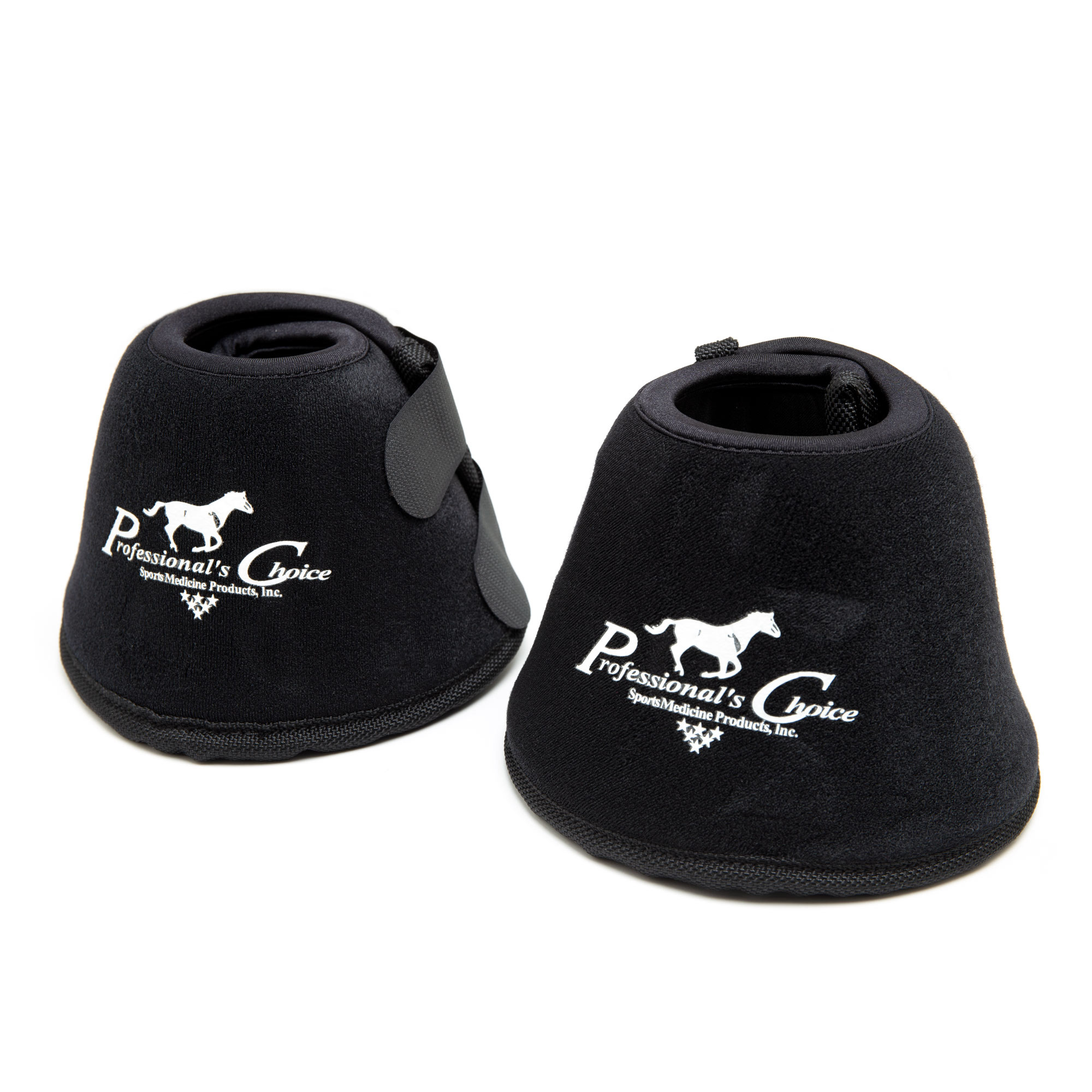 Kaloszki dla konia najnowszego producenta z naszej oferty Professionals Choice. Kaloszki wykonano z bardzo dobrej jakości materiału z wykończeniem z lycry, która się nie ściera, kaloszki przepuszczają powietrze i są komfortowe dla konia. Ten model kaloszków zapewnia najwyższy poziom ochrony końskich kopyt, zakrywają całe kopyto wraz z opaską koronową i cebulką, dzięki specjalnej zakładce w tylnej części. Ponadto zapewniają doskonałą amortyzacje w delikatnych miejscach, zapobiegają przed otarciami i można je stosować podczas codziennych treningów. Dekoracyjnie w centralnej części znajduje się aplikacją z logo firmy Professionals Choice.