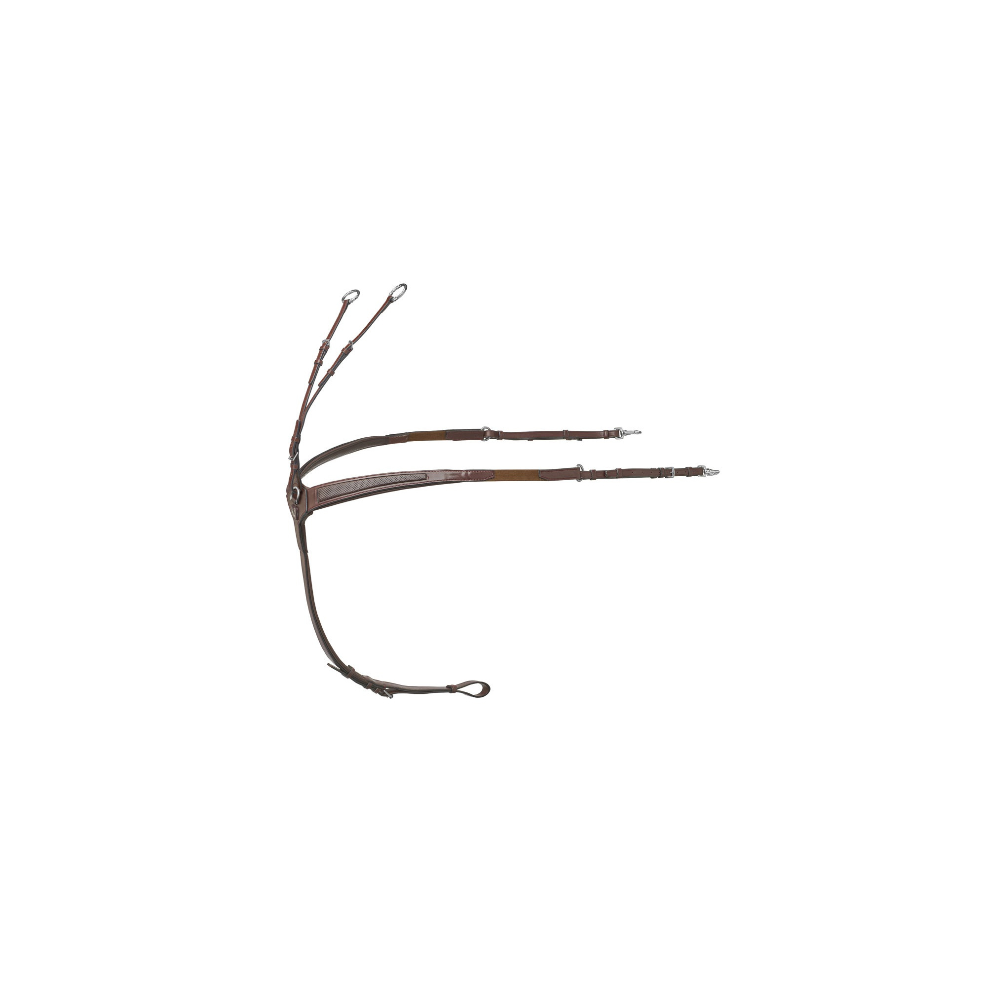 Napierśnik dwupunktowy z wytokiem uszyty ze skóry najwyższej jakości. Starannie wykończony i bardzo wytrzymały. Elastyczne wstawki zapewniają komfort dla konia i swobodę ruchów.