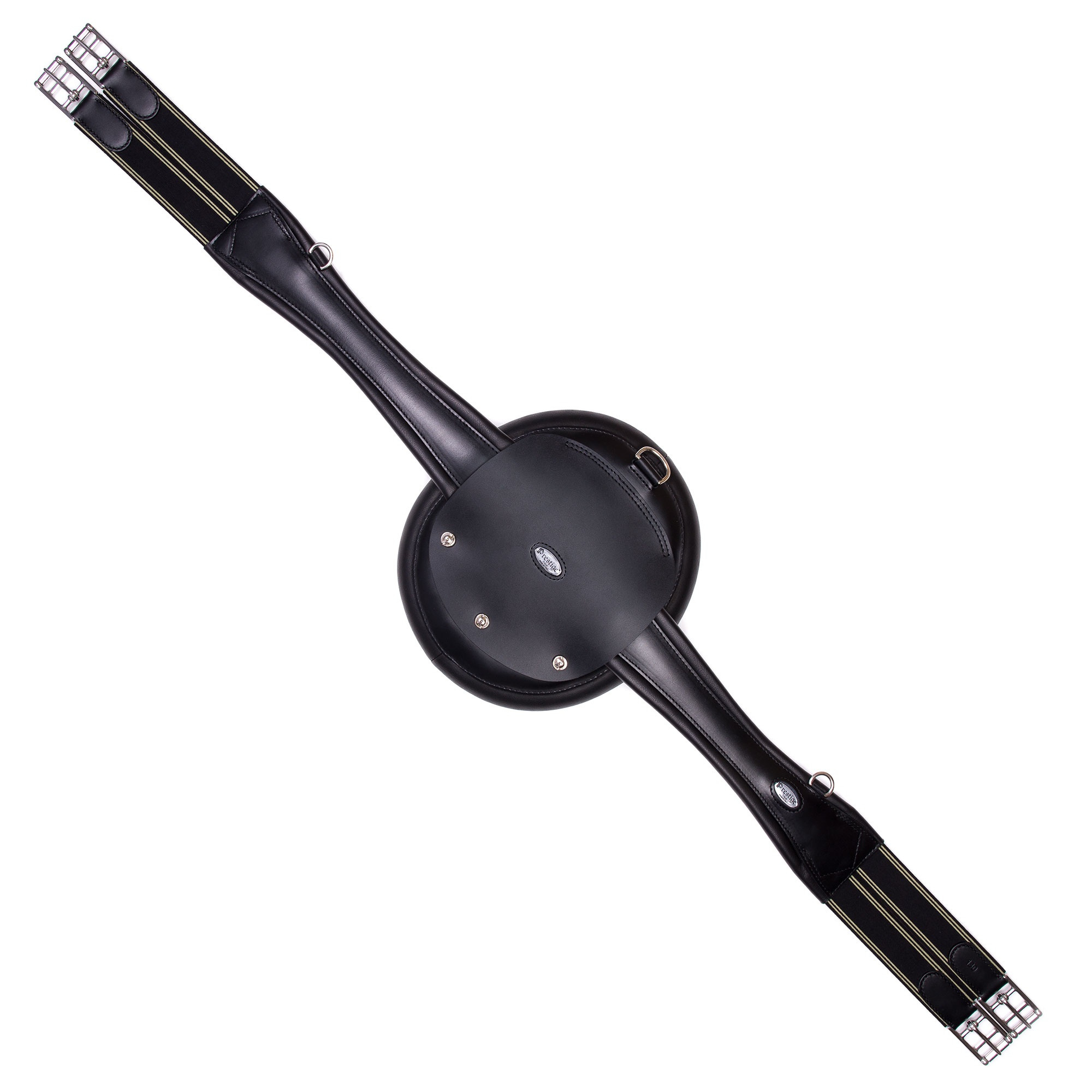 Popręg dzięki wbudowanemu w centralnej części okrągłemu, miękko obszytemu fartuchowi rozkłada równomiernie nacisk popręgu na mostek konia, niwelując niepożądany dyskomfort. Doskonale sprawdzi się w przypadku wrażliwych koni, ze skłonnościami do zapoprężeń. Jednocześnie wyjątkowa budowa popręgu stabilizuje pozycję siodła na grzbiecie konia, pozwalając na jeszcze lepsze jego dopasowanie. Popręg zakończony został wytrztymałymi gumami z obu stron, co dodatkowo wpływa korzystnie na komfort konia, a jednocześnie umożliwia łatwiejsze jego dopinanie przez jeźdźca. Do wyprowdukowania popręgów Prestige Italia wykorzystywane są materiały najwyższej jakości jak impregnowana skóra i nierdzewne okucia.