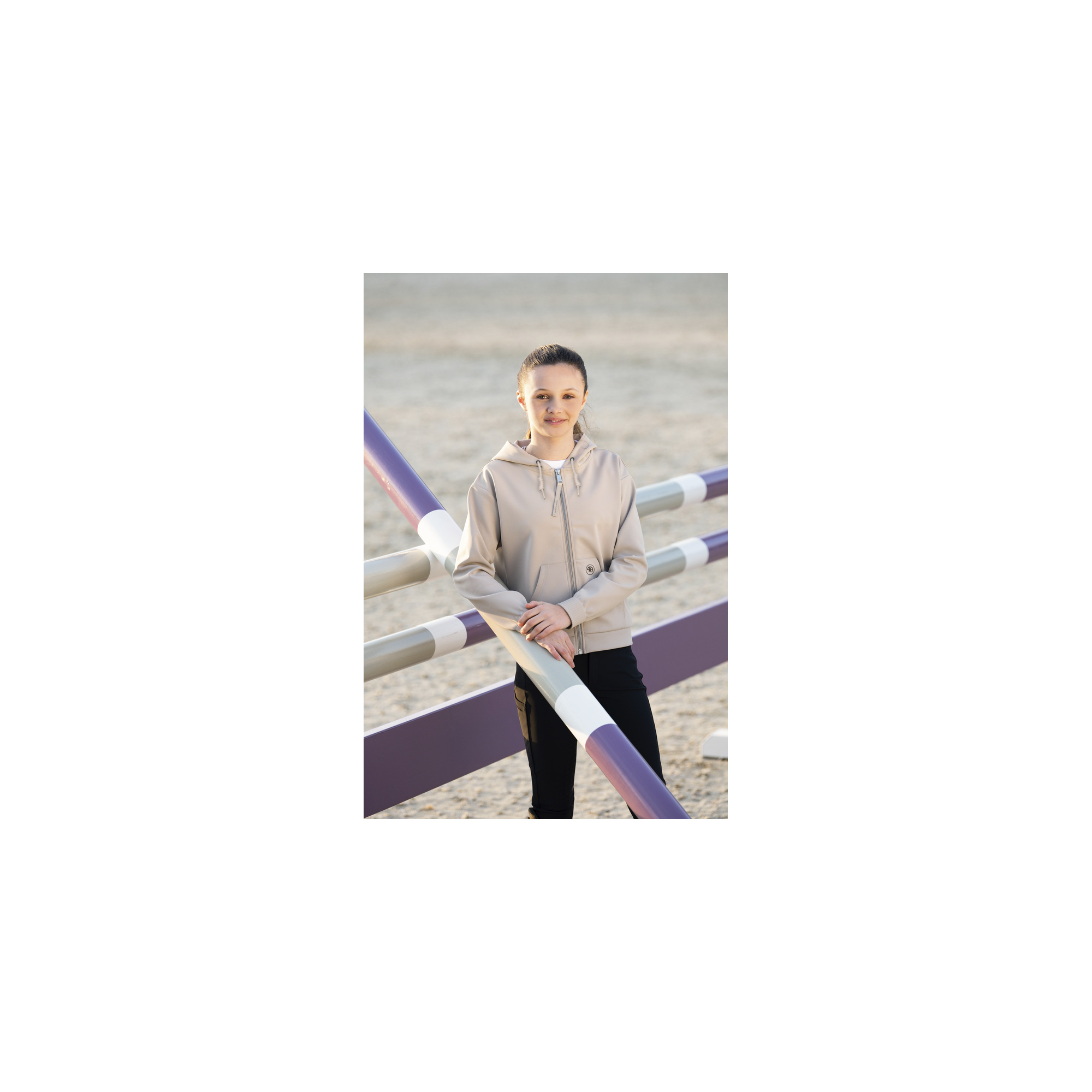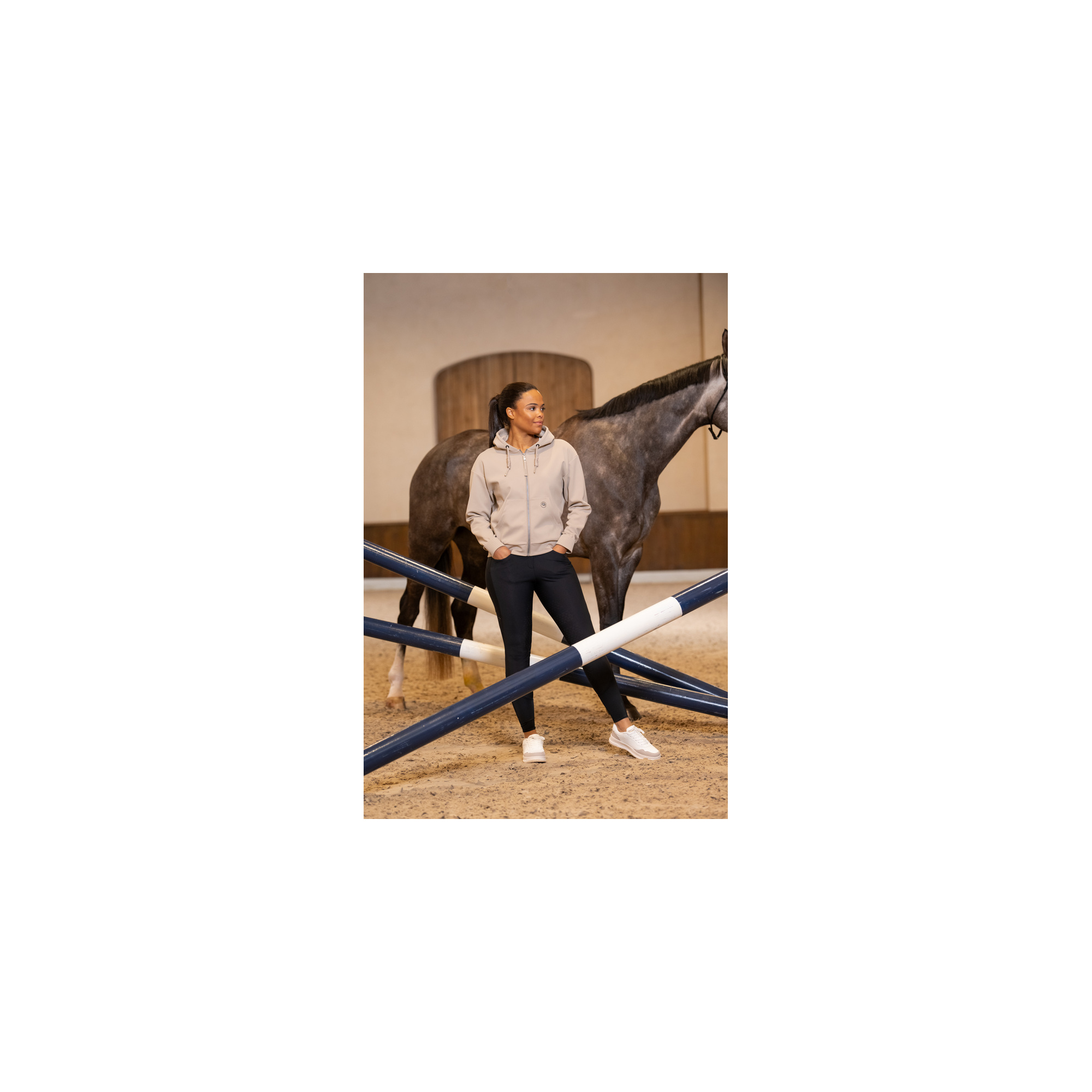 Nowoczesna bluza Hoody Jacket z kolekcji Athleisure to połączenie sportowej wygody i modnego, miejskiego stylu. Wykonana z miękkiego materiału Softtouch, doskonale dopasowuje się do sylwetki i sprawdza się w różnych warunkach pogodowych. Idealna do stajni, na trening lub casualowe stylizacje.