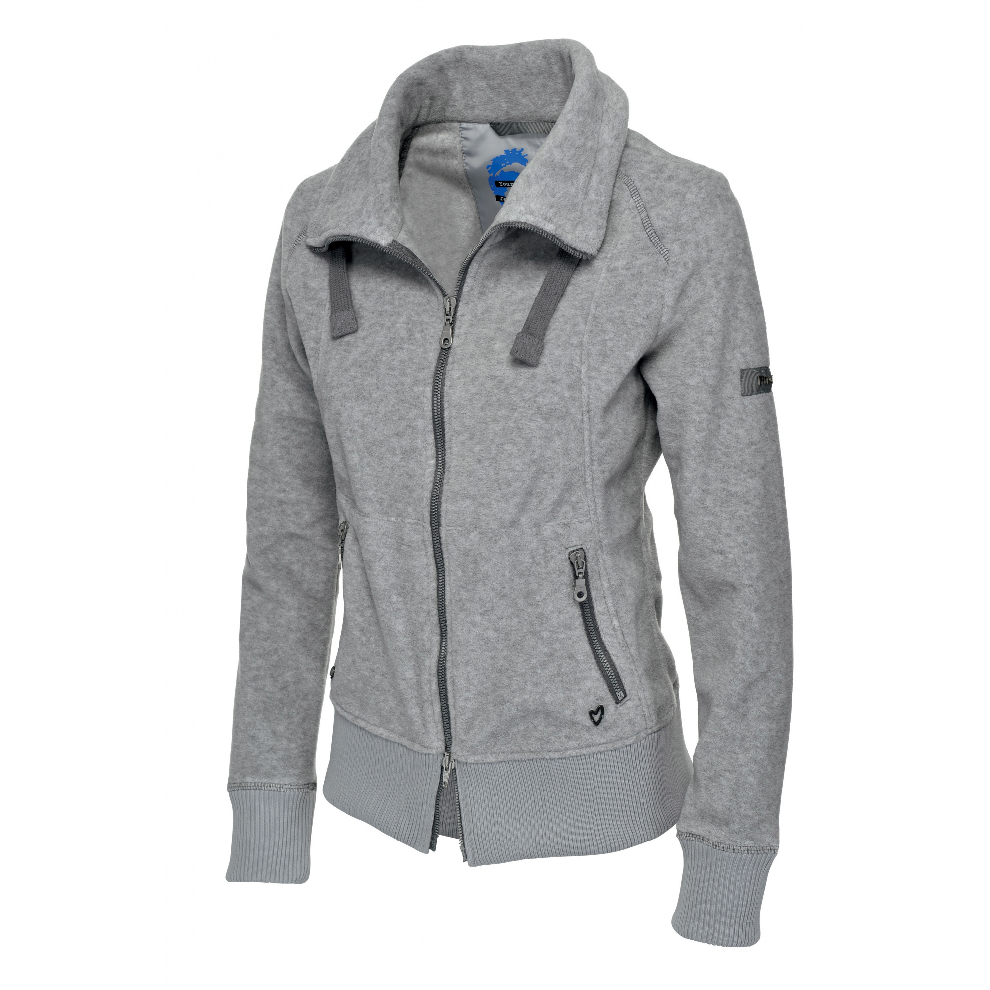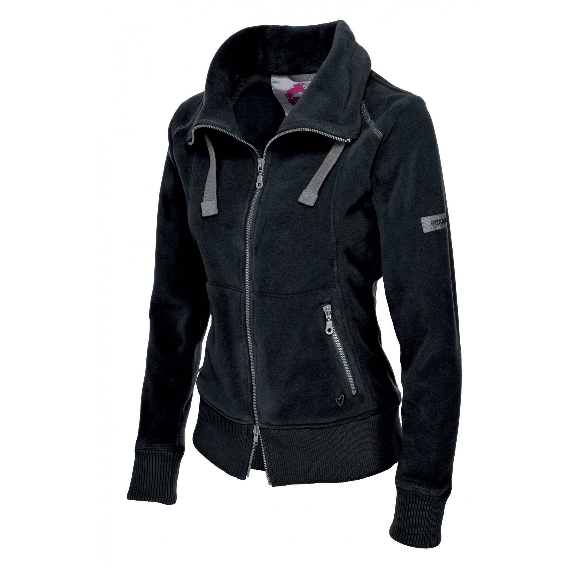 Sportowa kurta polarowa z wysoką, luźną stójką, regulowaną sznureczkami. Dół oraz mankiety zakończone szerokim ściągaczem. Kurtka na zamek rozpinany w dwóch kierunkach. Z tyłu na kołnierzu motyw serca z ozdobnych nitów. Dodatkowo, na lewej kieszeni małe metalowe serduszko. Polar niezwykle piękny i stylowy, a przy tym bardzo praktyczny i wygodny podczas jazdy.