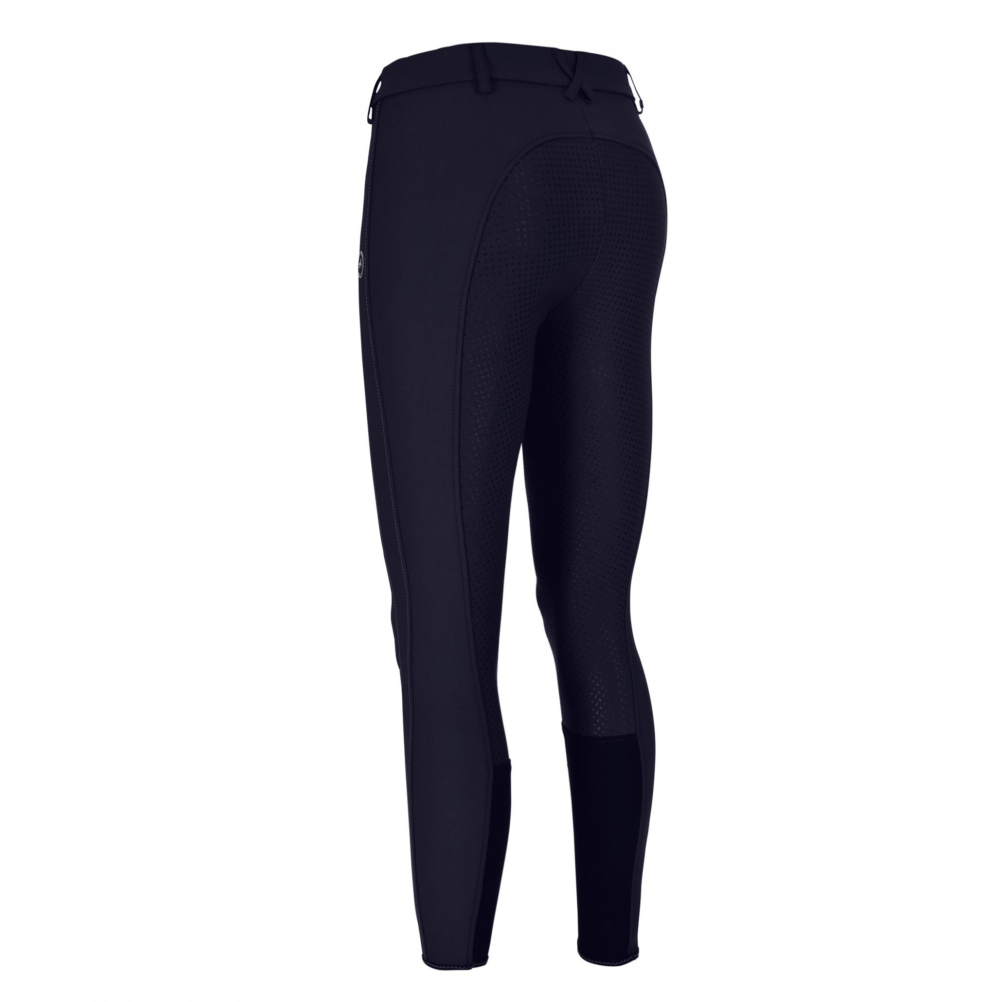 Pełnolejowe bryczesy Latina Grip z klasycznej kolekcji firmy Pikeur, posiadają silikonowy lej, który zapewnia lepszą przyczepność do siodła. Z boków bryczesów wszyte zostały dwa pasy, które są przyozdobione wyhaftowanym logo marki Pikeur. Spodnie z przodu posiadają dwie wszyte po skosie kieszenie zamykane na zamek błyskawiczny. Spodnie posiadają szerokie szlufki do, których bez problemu dobierzemy pasek. Od połowy nogawki od wewnętrznej strony wszyty został elastyczny materiał dzięki czemu spodnie idealnie przylegają do nóg.