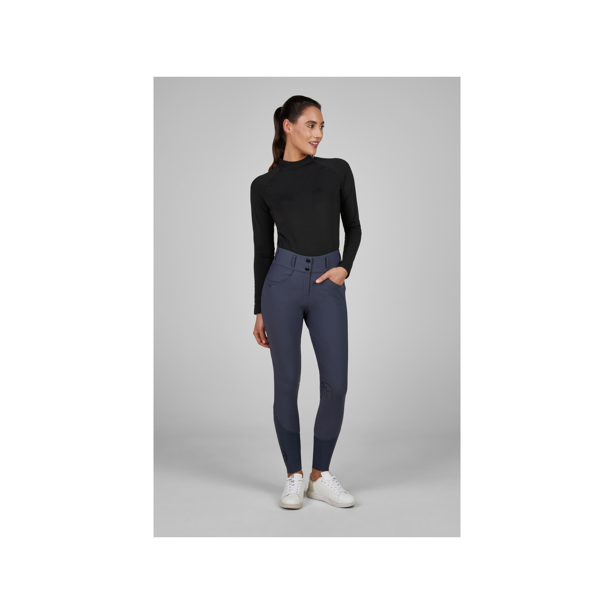 Pikeur Elin SD to nowoczesne bryczesy jeździeckie damskie z linii Athleisure, łączące sportową funkcjonalność z modnym designem. Wykonane z innowacyjnego materiału stretch, gwarantują idealne dopasowanie do sylwetki, pełną swobodę ruchów oraz wysoki komfort noszenia podczas codziennych treningów i zawodów.
