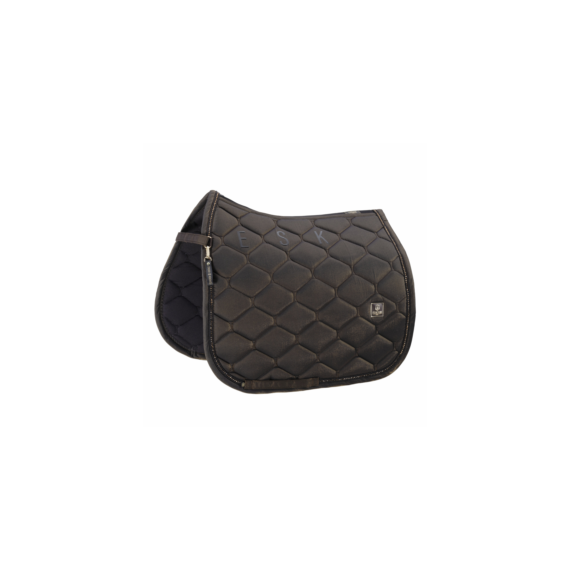 Czaprak Eskadron Glam Crystal to prawdziwy symbol elegancji i wyrafinowania z najnowszej kolekcji Eskadron Heritage 2025/26. Wykonany z luksusowego materiału Glam o subtelnym połysku, przyciąga wzrok i doskonale prezentuje się pod siodłem. Pikowanie w romby nadaje mu klasyczny wygląd, a błyszczące kryształki wzdłuż lamówki dodają wyjątkowego blasku. Wnętrze czapraka wykonane z oddychającej tkaniny technicznej gwarantuje komfort i skuteczne odprowadzanie wilgoci. Optymalne wypełnienie zapewnia amortyzację i chroni koński grzbiet przed naciskiem. Subtelne logo Heritage dopełnia ekskluzywnego charakteru całości. To czaprak, który łączy funkcjonalność z elegancją – idealny na zawody i treningi.