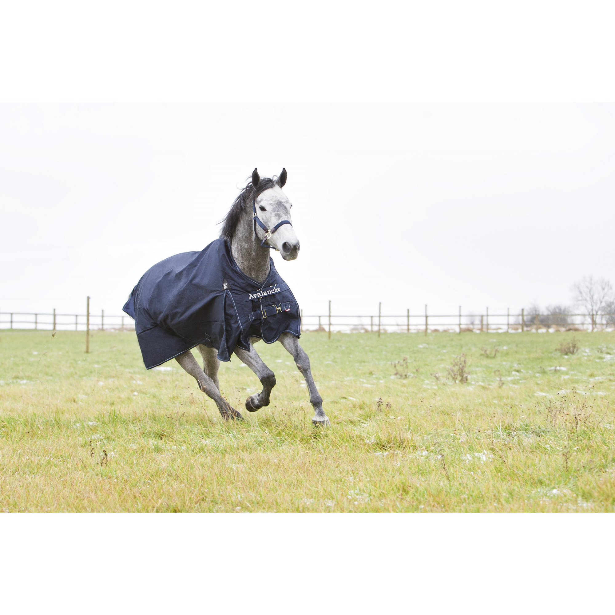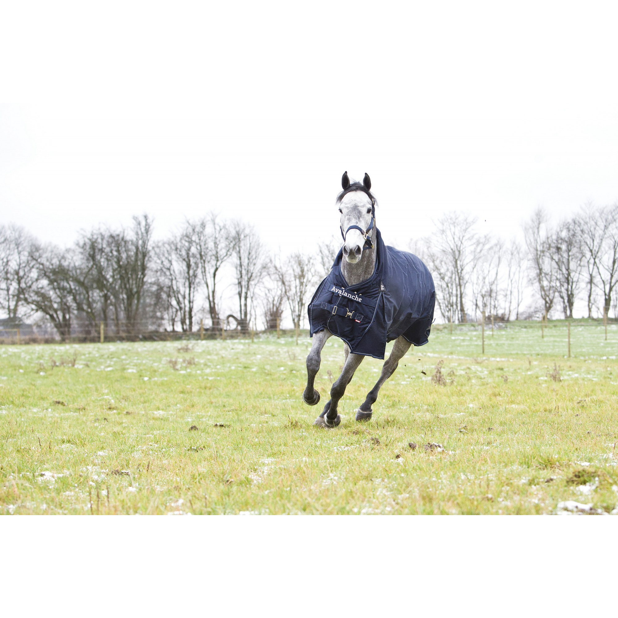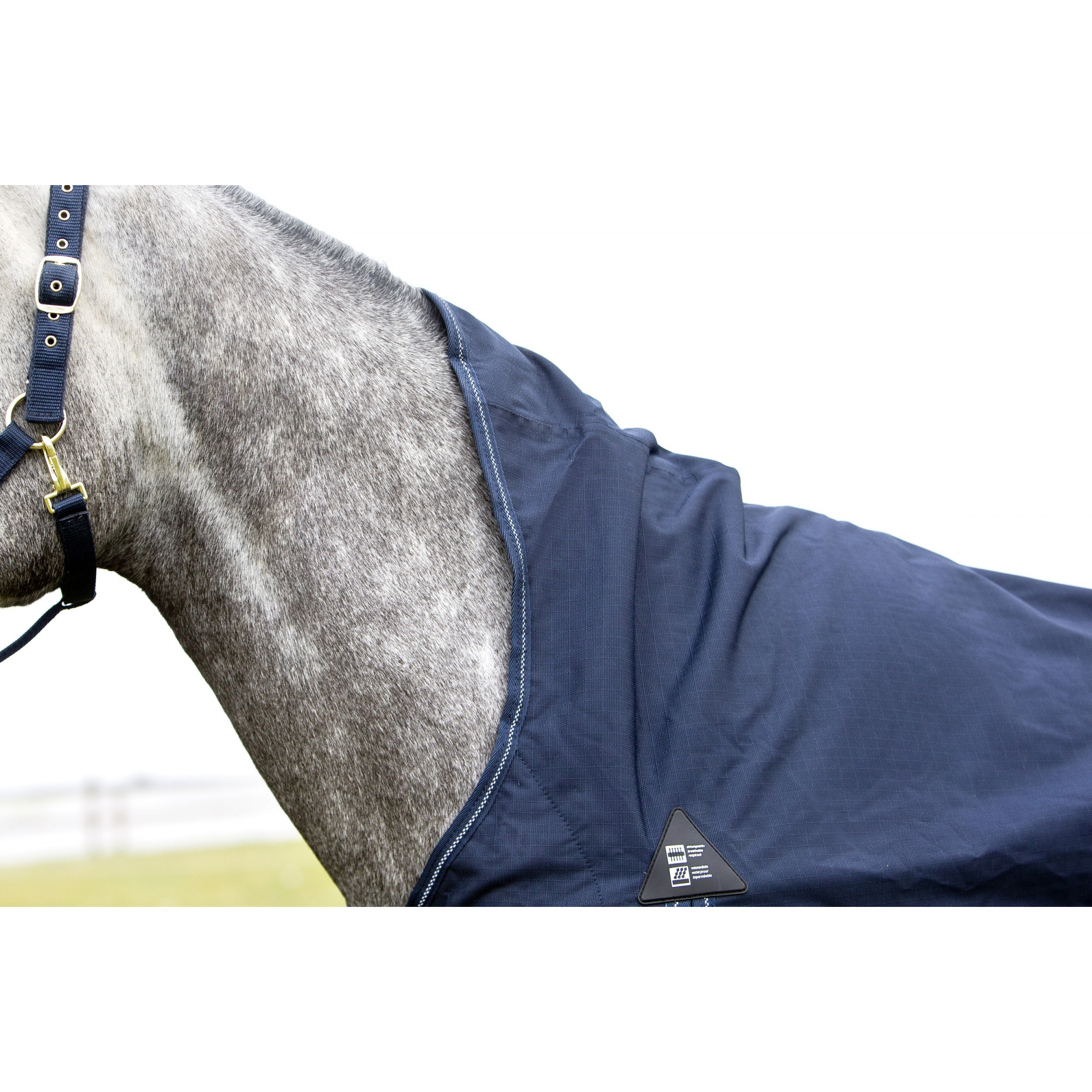 A horse rug from Horze. It is made of the highest-quality material that is highly breathable and protects from rain. The rug will be perfect for any weather conditions. It has a short hood on the neck, a big tail flap, and indents on the shoulder blades for full freedom of movement. Additionally, this rug has cross-straps, an adjustable double fastening on the front, and metal buckles. The rug is decorated with Horze's logo in the back bottom corner.