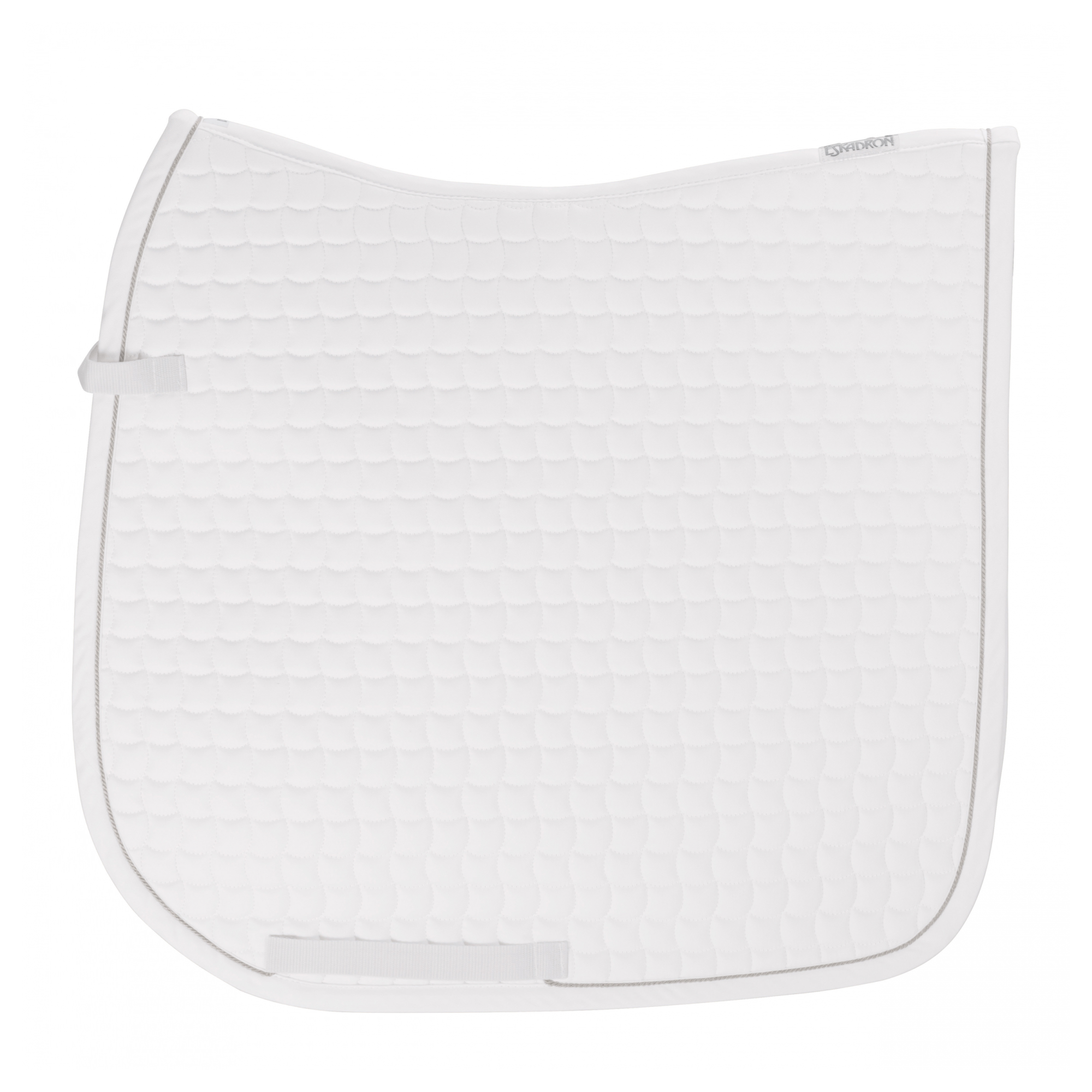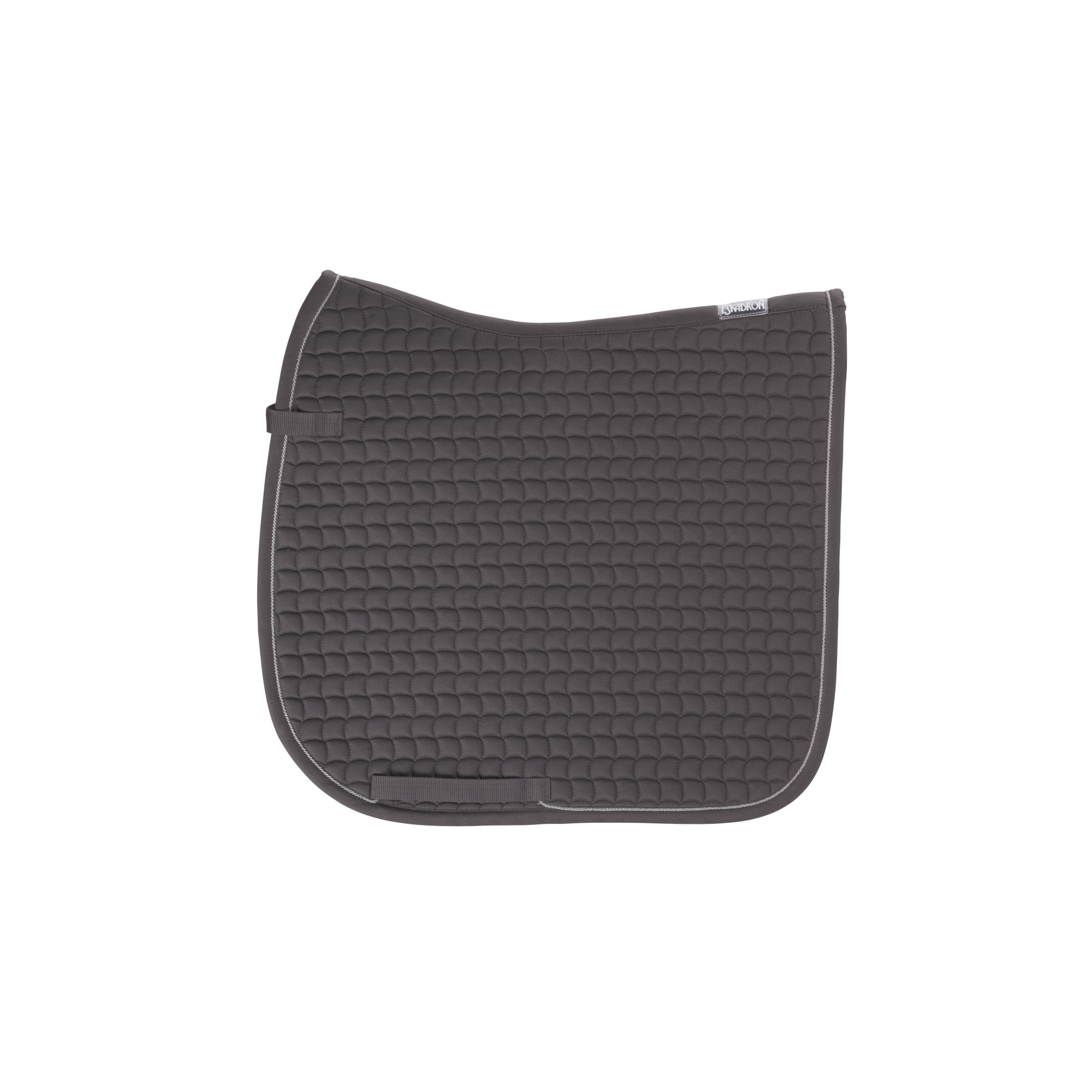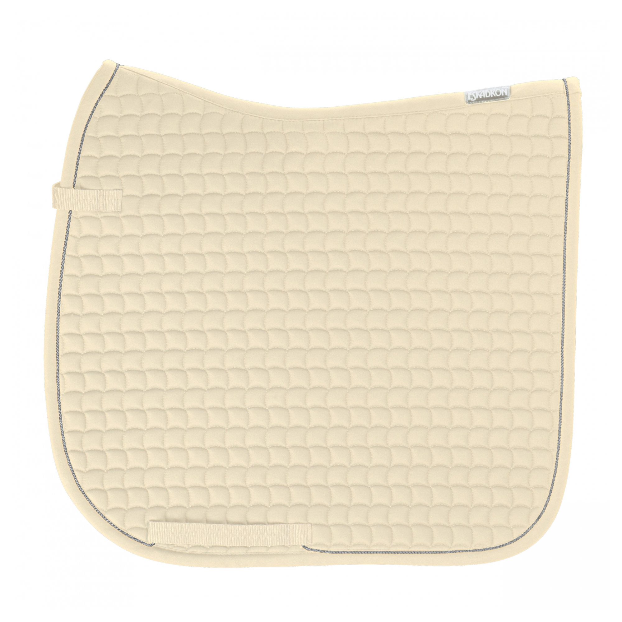 Czaprak dla konia firmy Eskadron. Został wykonany z bardzo dobrej jakości materiału bawełnianego z lekkim wypełnieniem składającym się z pianki poliuretanowej, dzięki czemu zapewnia doskonała ochronę grzbietu konia przed zbyt dużym uciskiem oraz przed otarciami, które mogłyby być spowodowane przez siodło. Dodatkowo czaprak został wyposażony w pasek z przodu do doczepienia do siodła oraz w paski do przełożenia popręgu. Dekoracyjnie na lamówce dodano ozdobny sznurek w kolorze srebrnym.